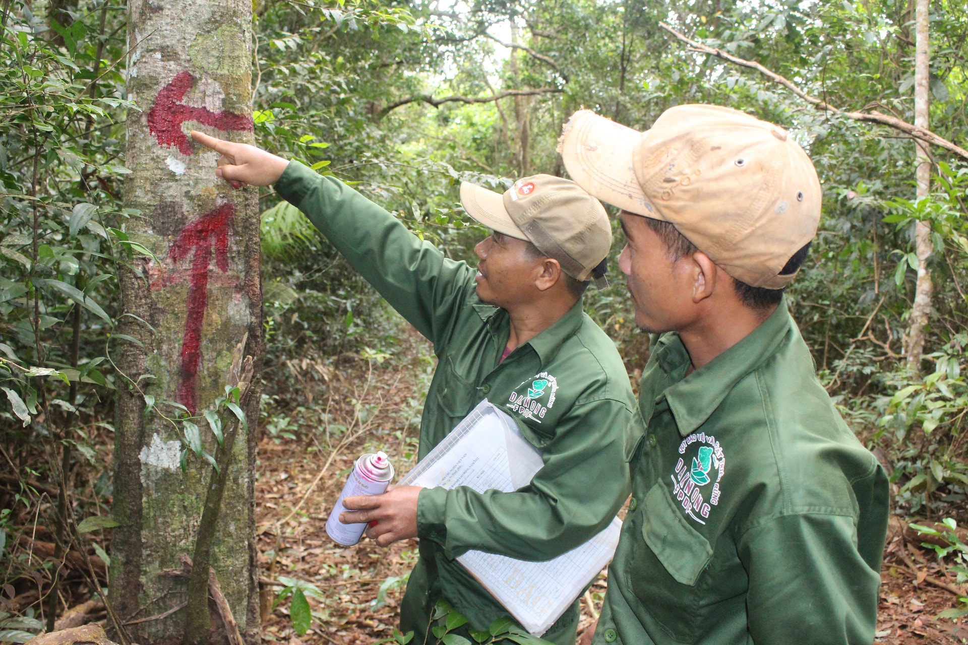 Ranh giới tiếp giáp với rừng của tổ chức khác được Ban quản lý đánh dấu bằng màu sơn trên những cây lớn để các thành viên khác nắm rõ khu vực rừng của mình quản lý