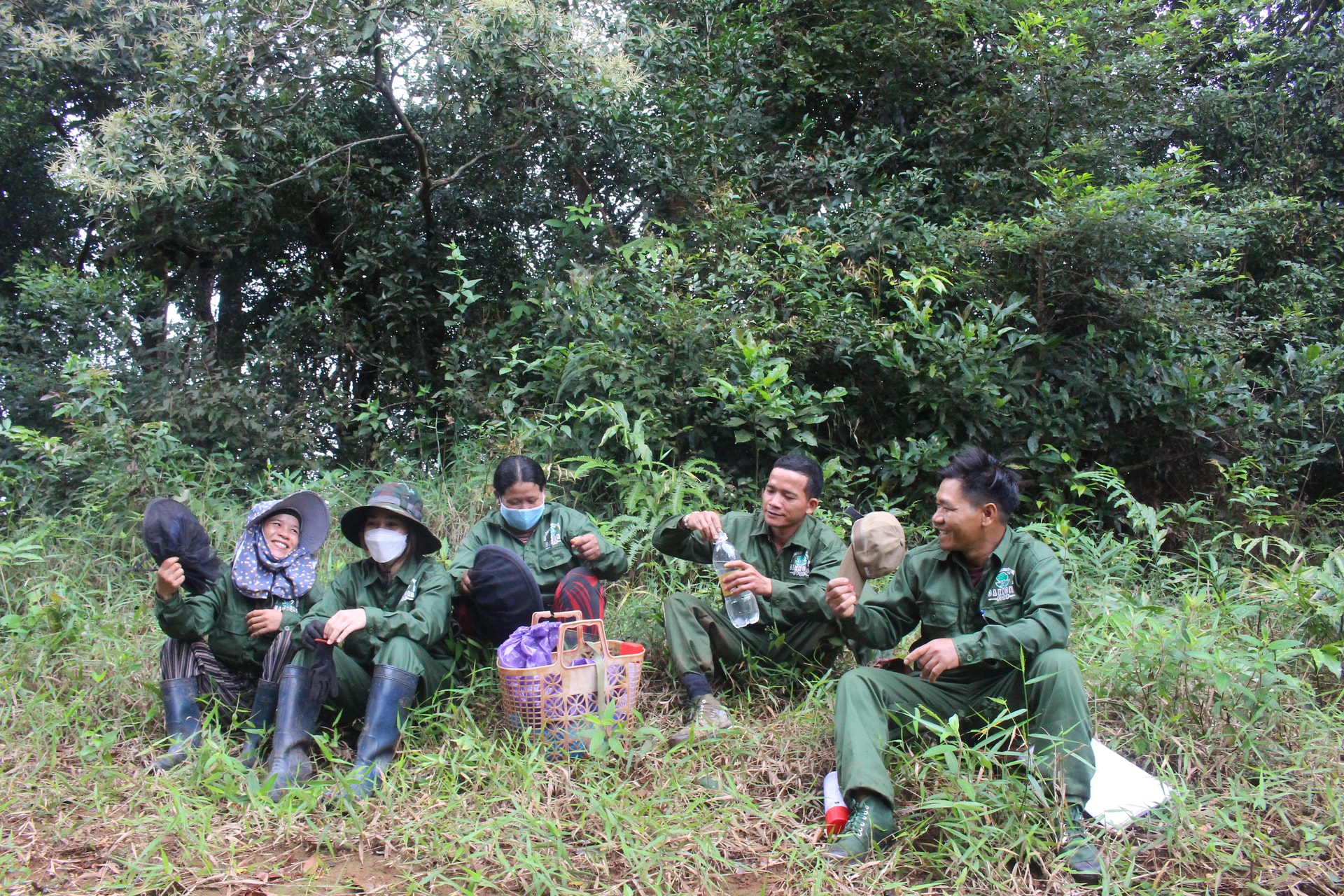 Một phút nghỉ ngơi khi tổ bảo vệ đi tuần tra, bảo vệ rừng cộng đồng