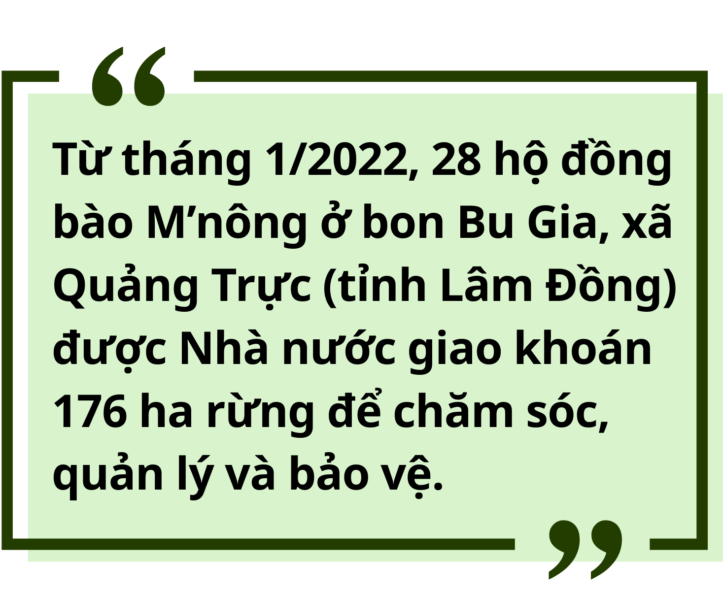 Nhờ sự chung tay của cộng đồng, đến nay rừng cộng đồng bon Bu Gia được giữ vững, không còn tình trạng phá rừng, lấn chiếm đất rừng. Nhiều diện tích rừng tái sinh đang từng bước phục hồi xanh tốt.
