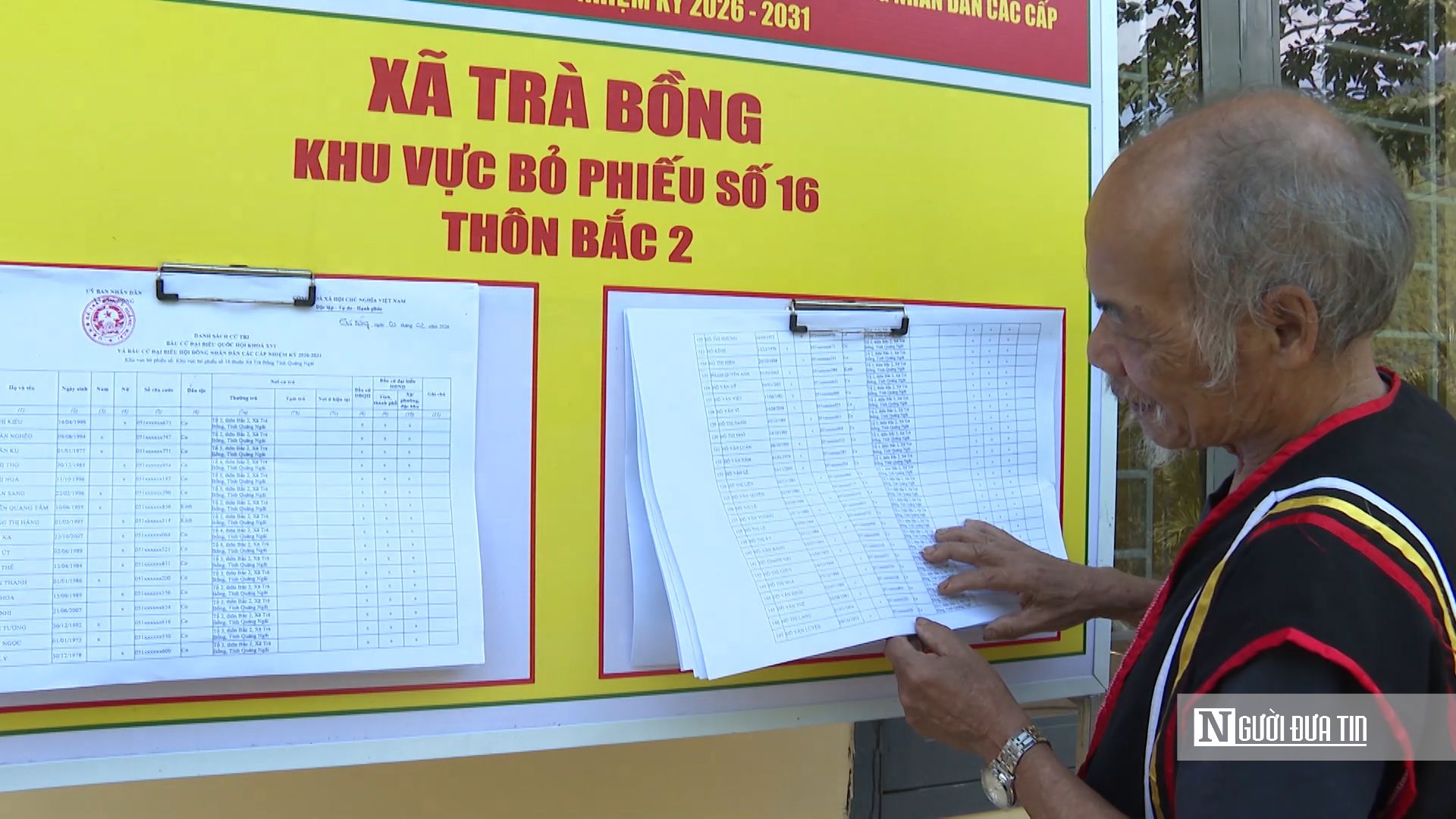 Tại xã Trà Bồng, nơi có đông đồng bào Co sinh sống, người dân cũng tập trung khá đông tại các khu vực niêm yết danh sách cử tri. Với hơn 12.000 cử tri, địa phương đã thành lập 20 tổ bầu cử tương ứng với 20 khu vực bỏ phiếu tại các thôn.