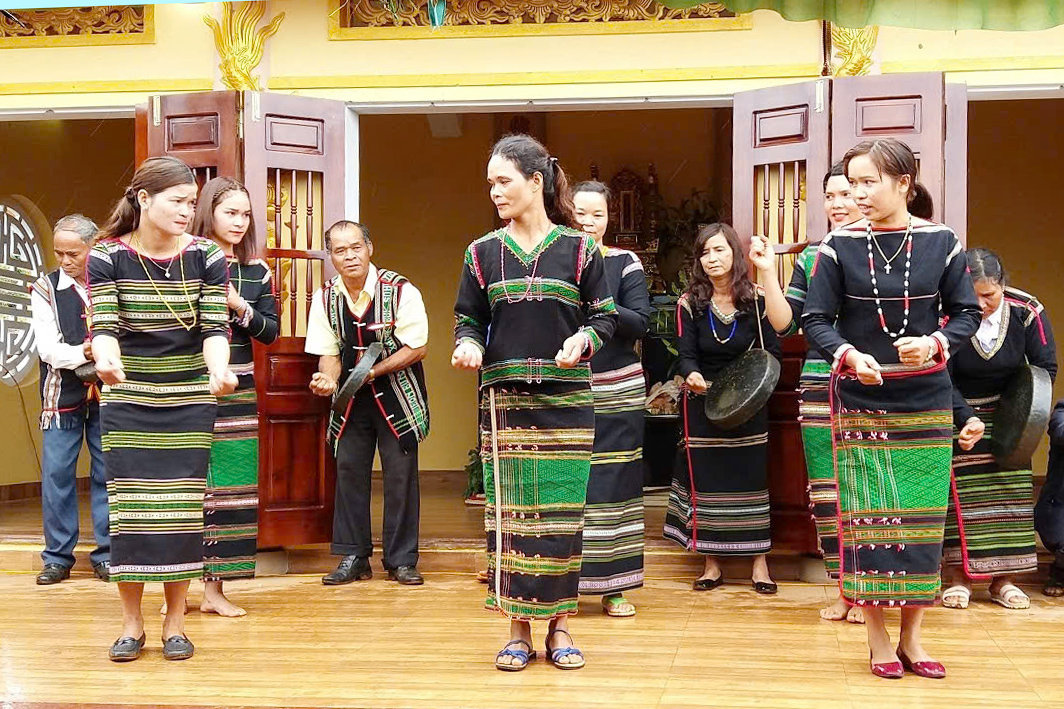 Đồng bào M’nông biểu diễn chiêng và xoang tại lễ giỗ