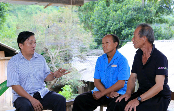 Ông Lầu Minh Pó (ngoài cùng bên trái), người có uy tín ở bản Pù Toong, xã Pù Nhi mong muốn Đảng, Nhà nước tiếp tục có những chính sách tạo nguồn lực phát triển kinh tế, văn hóa, xã hội phù hợp với đặc thù vùng cao.