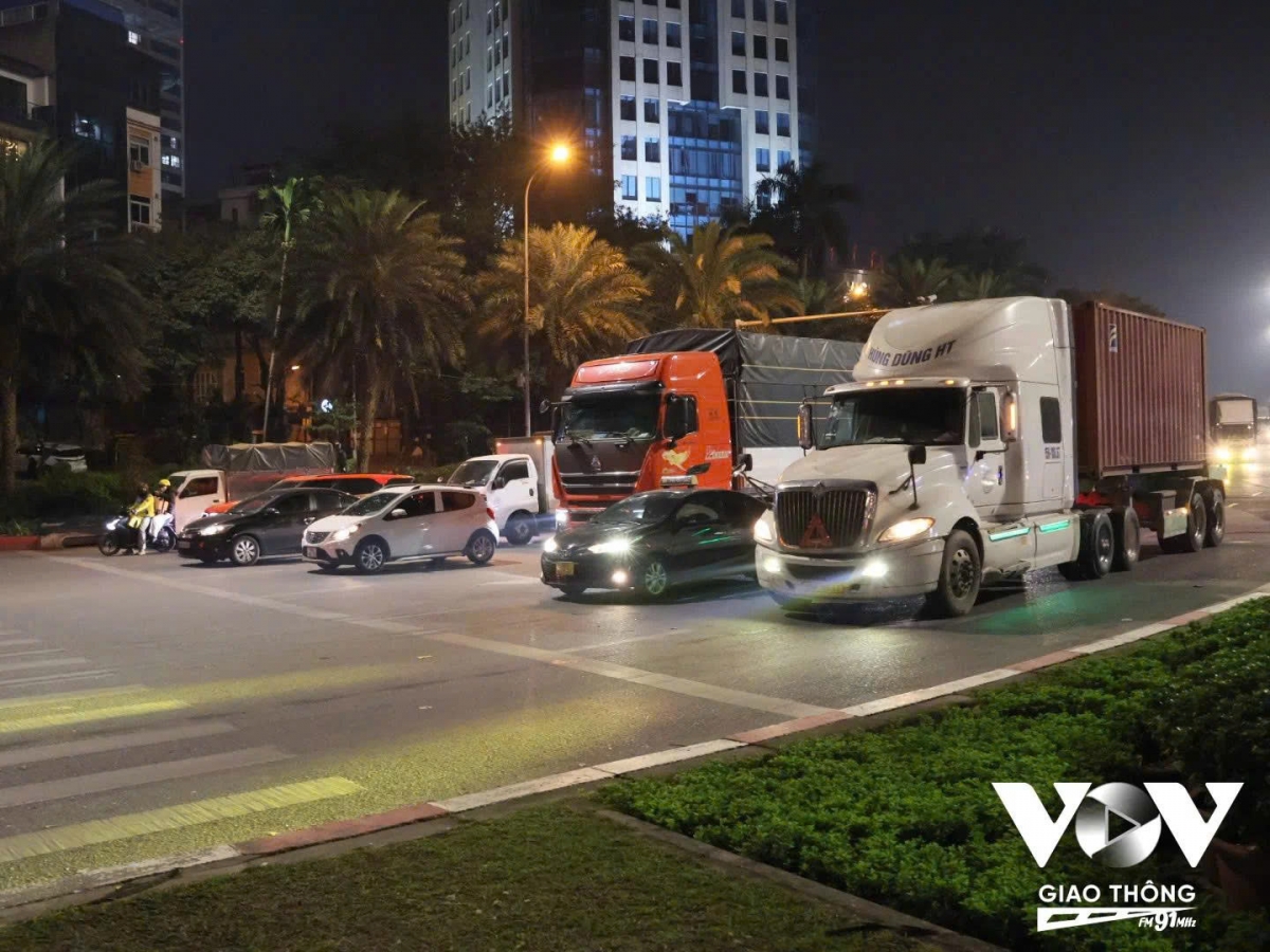 Xe tải, xe container di chuyển ổn định từ Đại lộ Thăng Long vào Vành đai 3 sau thời gian hạn chế