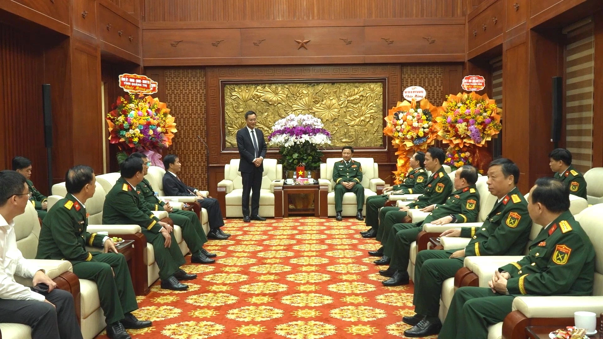 Đồng chí Bí thư Tỉnh ủy Quảng Trị Lê Ngọc Quang chúc mừng Bộ Tư lệnh Quân khu 4 nhân dịp kỷ niệm 80 năm Ngày truyền thống LLVT Quân khu - Ảnh: HT