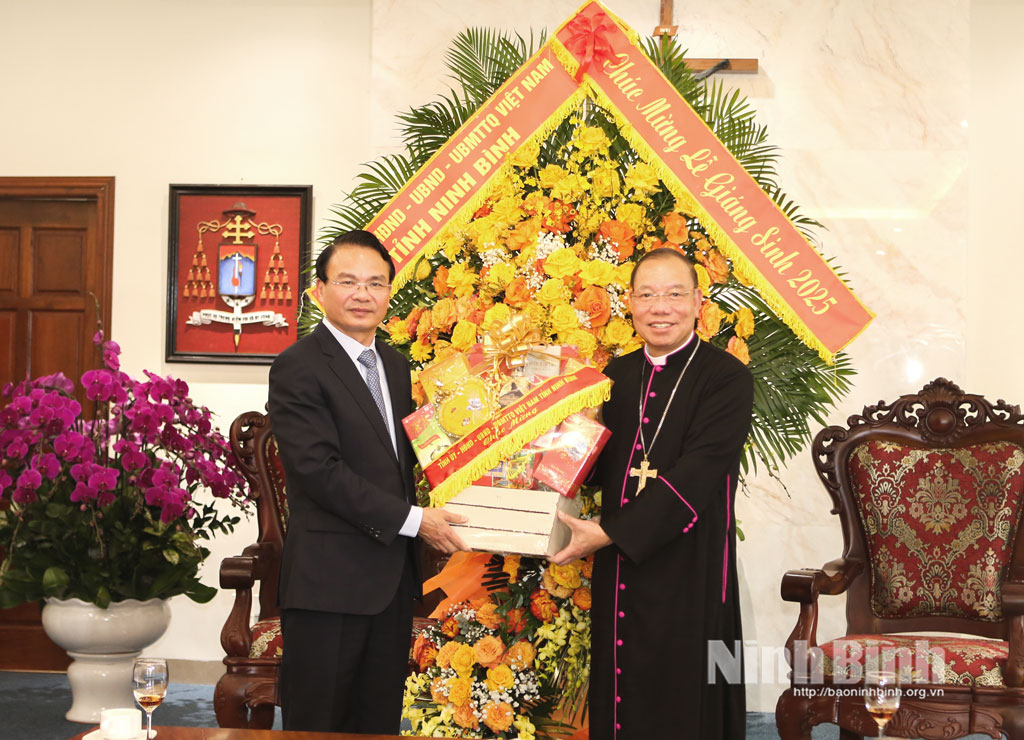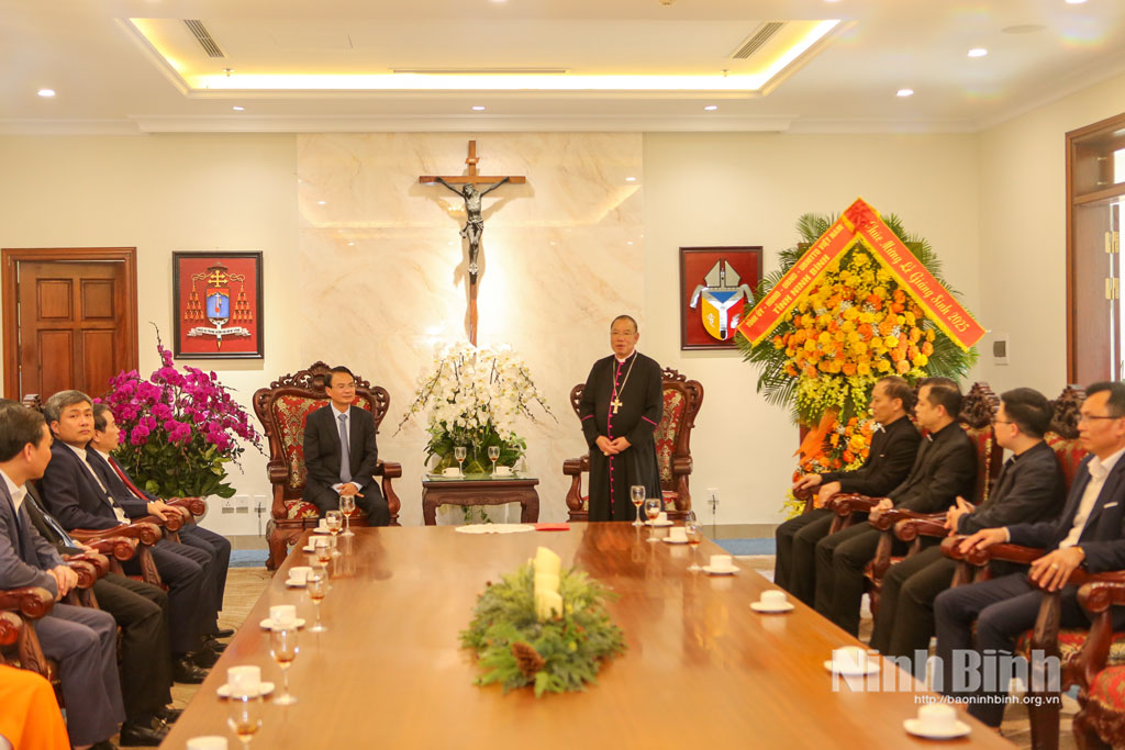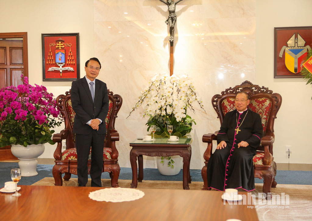Đức Tổng Giám mục Vũ Văn Thiên trân trọng cảm ơn tình cảm và chúc đồng chí Bí thư Tỉnh ủy cùng Đoàn công tác luôn dồi dào sức khỏe, hạnh phúc, năm mới có niềm vui, nhiều năng lượng mới và đạt nhiều thành quả trong mọi lĩnh vực để xây dựng đất nước và tỉnh Ninh Bình ngày càng phát triển về mọi mặt. Đồng thời chúc mừng những thành tựu trong phát triển kinh tế - xã hội của tỉnh năm 2025.