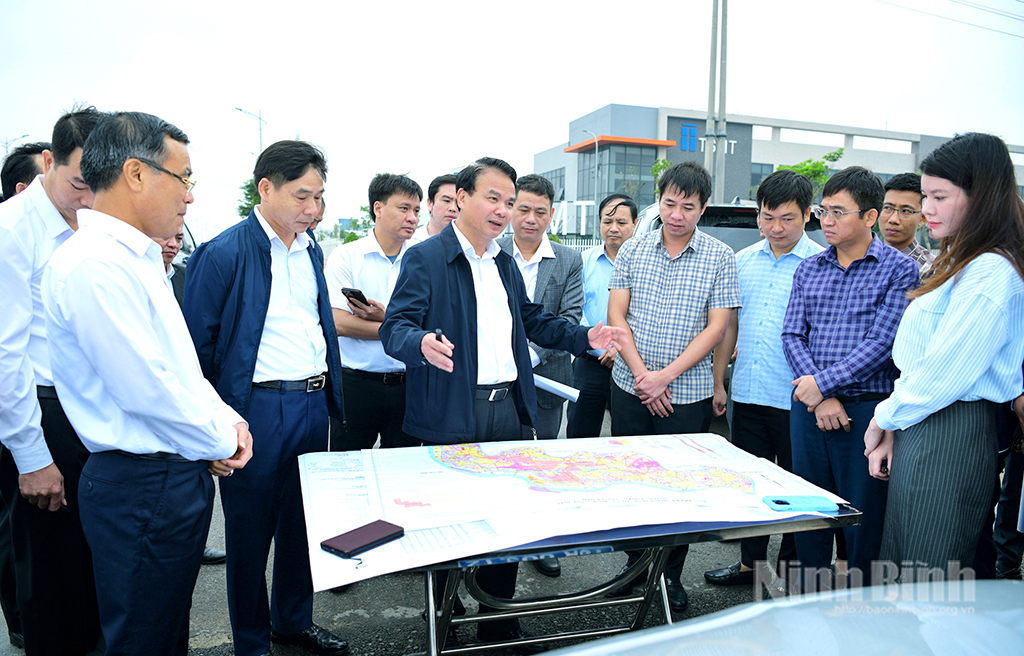 Đồng chí Bí thư Tỉnh ủy Đặng Xuân Phong và Đoàn công tác của tỉnh khảo sát tại Khu công nghiệp Thái Hà, xã Bắc Lý.