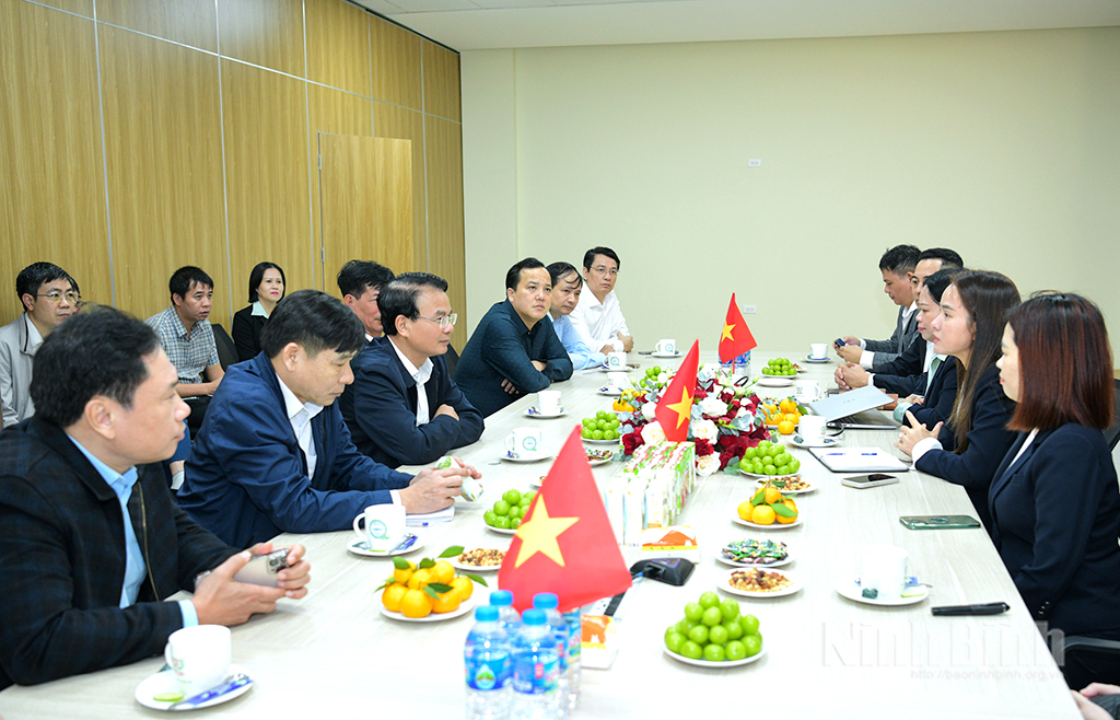 Đồng chí Bí thư Tỉnh ủy Đặng Xuân Phong và Đoàn công tác của tỉnh làm việc với Công ty TNHH Thanh An (Khu công nghiệp Thái Hà).