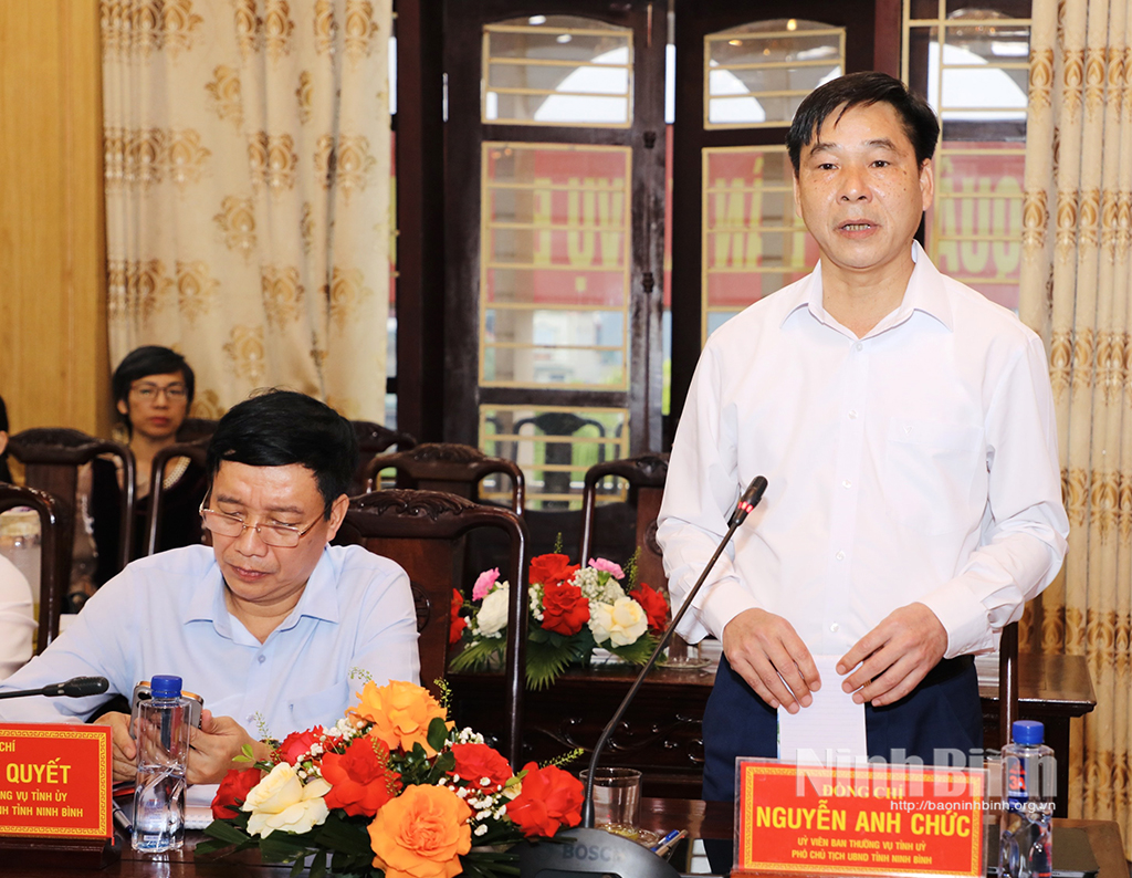 Đồng chí Nguyễn Anh Chức, Ủy viên Ban Thường vụ Tỉnh ủy, Phó Chủ tịch UBND tỉnh phát biểu tại buổi làm việc.