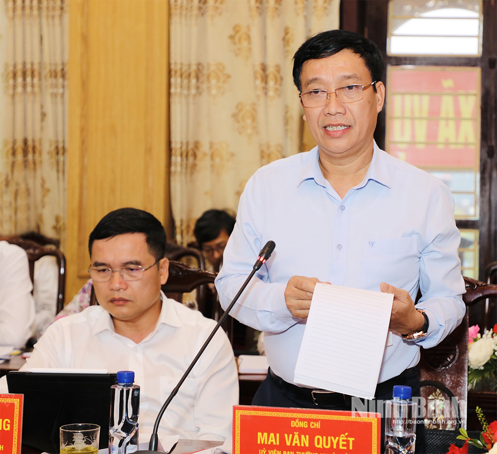 Phát biểu tại buổi làm việc, đồng chí Lê Quốc Chỉnh, Phó Bí thư Tỉnh ủy, Chủ tịch HĐND tỉnh nhấn mạnh: Các xã trong khu vực chưa phát huy tối đa tiềm năng, lợi thế về tự nhiên, lịch sử, văn hóa, đặc biệt là tiềm năng của Khu di tích lịch sử - văn hóa - tâm linh Phủ Dầy. Trước những khó khăn, vướng mắc, Tỉnh ủy, HĐND, UBND tỉnh sẽ chỉ đạo các sở, ngành tập trung nghiên cứu, tháo gỡ. Trước mắt, cần phối hợp với các cơ quan liên quan rà soát quy hoạch, ưu tiên đầu tư phát triển các khu vực thị trấn, thị tứ trước sáp nhập, nâng cao tỷ lệ đô thị hóa, góp phần thực hiện mục tiêu đến năm 2030 đưa Ninh Bình trở thành thành phố trực thuộc Trung ương theo Nghị quyết Đại hội Đảng bộ tỉnh lần thứ I, nhiệm kỳ 2025-2030; đồng thời tăng cường quản lý đất đai, xử lý nghiêm các trường hợp vi phạm.