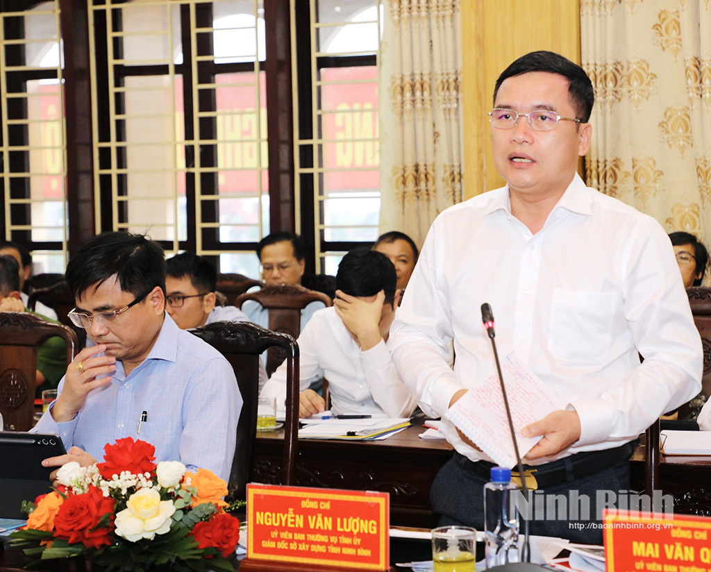 Đồng chí Nguyễn Văn Lượng, Ủy viên Ban Thường vụ Tỉnh ủy, Giám đốc Sở Xây dựng phát biểu tại buổi làm việc.
