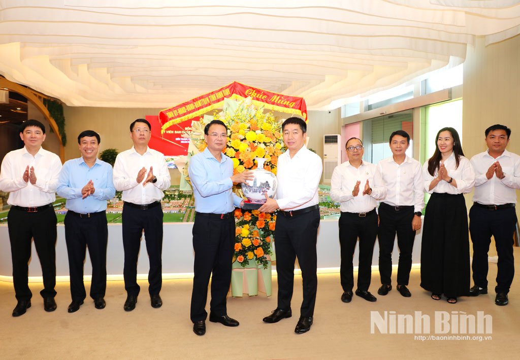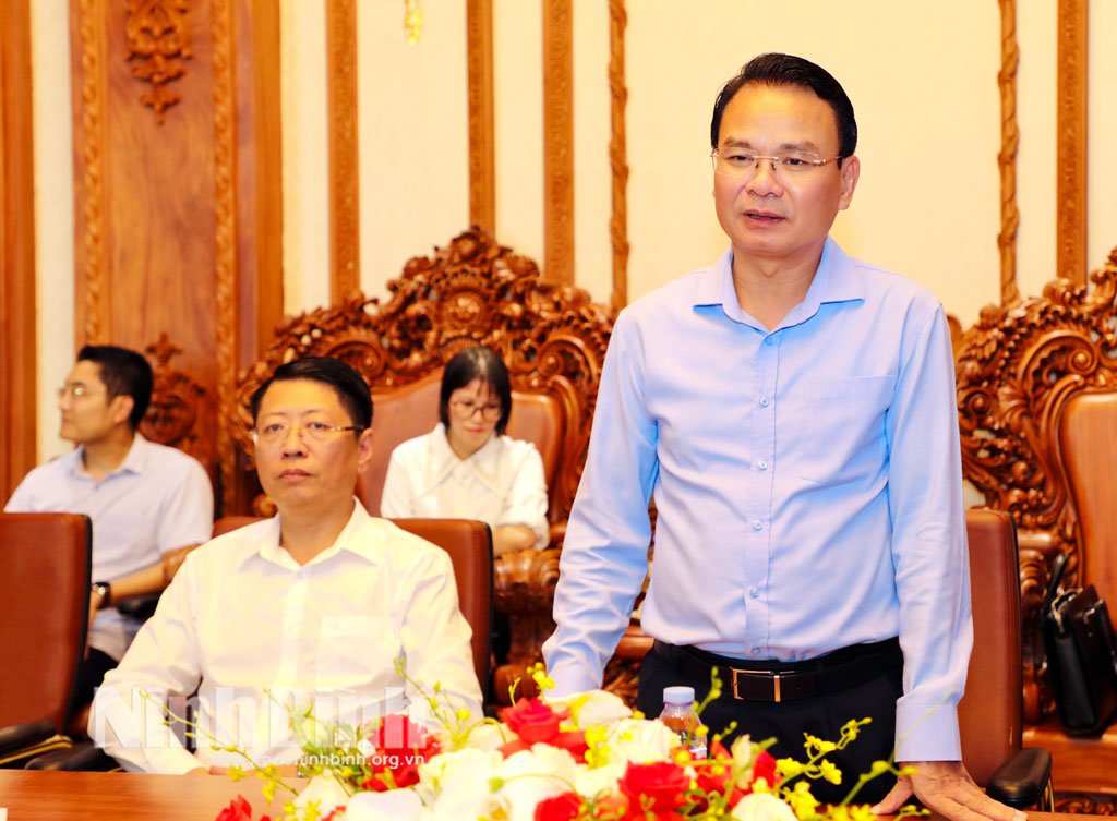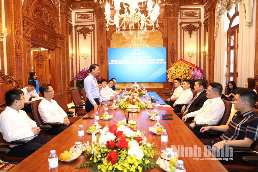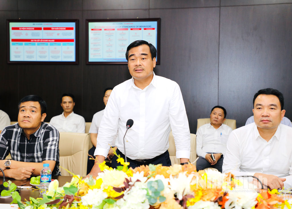 Nhân ngày truyền thống của đội ngũ doanh nhân Việt Nam, đồng chí chúc cộng đồng doanh nghiệp của tỉnh nói chung và các doanh nghiệp mà đoàn đến thăm tiếp tục phát triển mạnh mẽ, bền vững. Đồng chí mong muốn trong thời gian tới, các doanh nghiệp tiếp tục nghiên cứu, đầu tư mở rộng sản xuất, kinh doanh, đa dạng hóa sản phẩm để góp phần đẩy mạnh sản xuất công nghiệp, du lịch, dịch vụ của tỉnh phát triển, có nhiều đóng góp hơn nữa cho địa phương và có được những công trình tầm vóc xứng đáng với vị thế của tỉnh Ninh Bình mới.