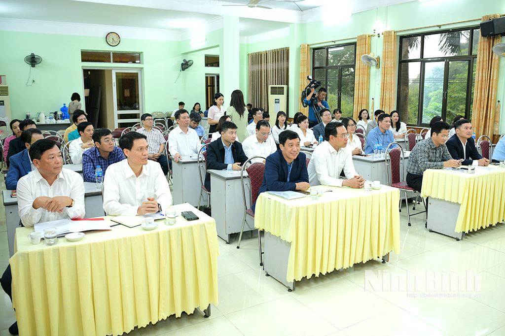 Tại buổi làm việc, đồng chí Phạm Thị Thu Hằng, Ủy viên Ban Thường vụ Tỉnh ủy, Tổng Biên tập Báo và phát thanh, truyền hình Ninh Bình đã báo cáo tóm tắt tình hình hoạt động của đơn vị từ khi hợp nhất đến nay.