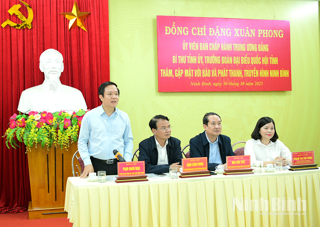 Phát biểu tại buổi gặp mặt, đồng chí Bí thư Tỉnh ủy Đặng Xuân Phong đánh giá cao nỗ lực vượt khó, tinh thần đoàn kết của tập thể cơ quan Báo và phát thanh, truyền hình Ninh Bình trong giai đoạn hợp nhất. Đồng chí nhấn mạnh vai trò chiến lược, dẫn dắt của Báo và phát thanh, truyền hình Ninh Bình trong thời gian tới cần tập trung đổi mới nội dung, đa dạng hóa hình thức thể hiện, nâng cao sức hấp dẫn của từng sản phẩm truyền thông, bám sát các lĩnh vực trọng điểm, các nhiệm vụ đột phá theo nghị quyết của Đảng bộ tỉnh.