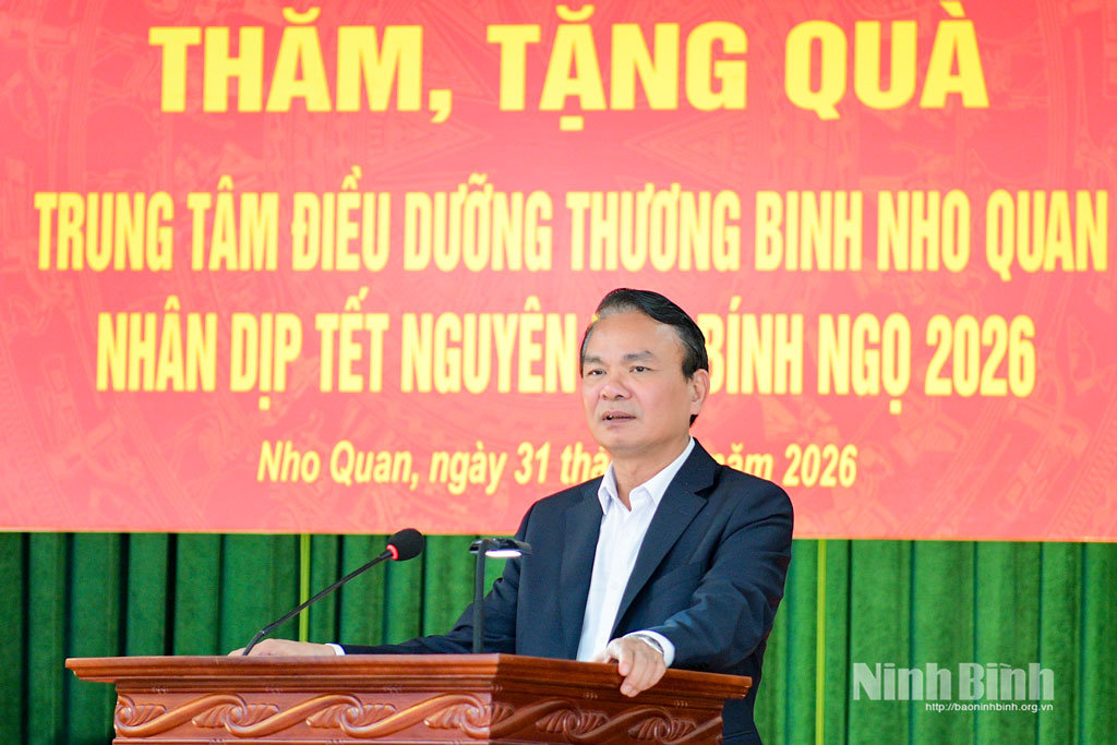 Tại Trung tâm Điều dưỡng thương binh Nho Quan, đồng chí Bí thư Tỉnh ủy đã thăm hỏi, tặng quà các thương, bệnh binh và cán bộ, viên chức của Trung tâm. Hiện Trung tâm đang chăm sóc, điều trị, nuôi dưỡng và phục hồi chức năng cho 105 đối tượng, trong đó có 60 thương binh, bệnh binh; 28 đối tượng bị ảnh hưởng chất độc hóa học và 17 thân nhân người có công.