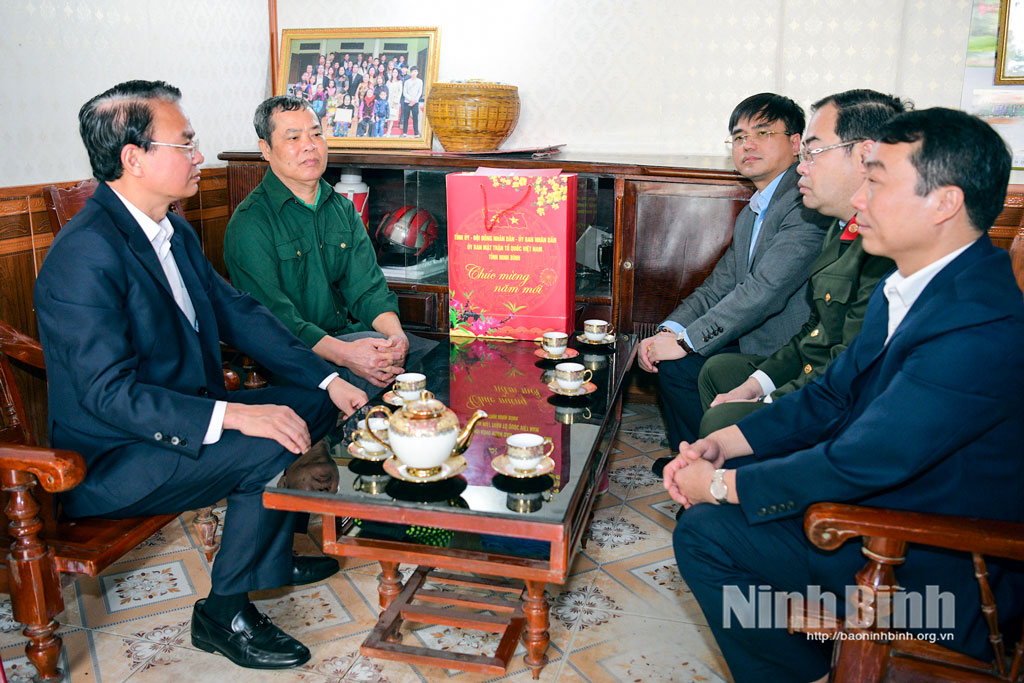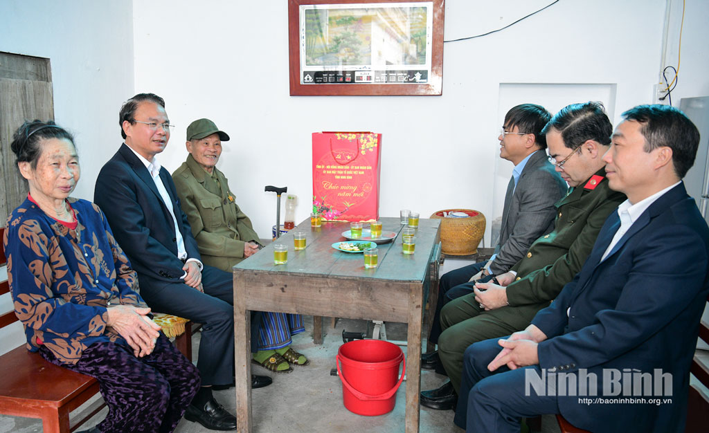 Tại các gia đình đến thăm, đồng chí Bí thư Tỉnh ủy ân cần thăm hỏi sức khỏe, đời sống, việc chuẩn bị đón Tết cổ truyền; đồng thời bày tỏ sự tri ân sâu sắc trước những đóng góp, hy sinh của các gia đình đối với sự nghiệp đấu tranh giải phóng dân tộc và bảo vệ Tổ quốc.