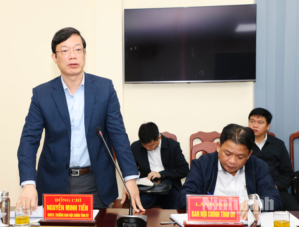 Đồng chí Nguyễn Minh Tiến, Ủy viên Ban Thường vụ Tỉnh ủy, Trưởng Ban Nội chính Tỉnh ủy phát biểu tại phiên tiếp công dân.