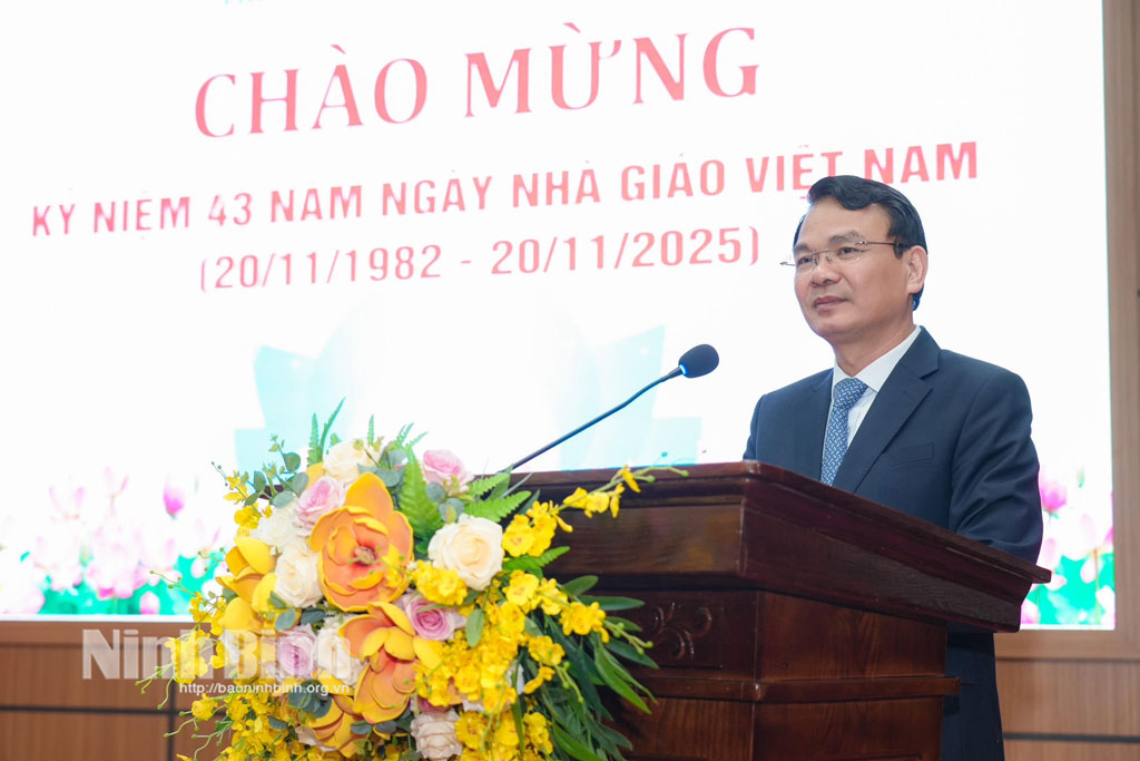 Nhấn mạnh tỉnh Ninh Bình sau hợp nhất với không gian phát triển rộng mở, có nhiều cơ hội và thách thức, đồng chí Bí thư Tỉnh ủy khẳng định, trong bối cảnh mới, yêu cầu rất cao phải đổi mới toàn diện từ nhận thức, tư duy đến hành động. Đồng chí đề nghị tập thể nhà trường phải luôn chú trọng xây dựng và giữ gìn sự đoàn kết, thống nhất; tránh tư tưởng vùng miền, cục bộ trong thực hiện nhiệm vụ. Đề nghị tập thể cán bộ, giảng viên, người lao động, nêu cao tinh thần cống hiến, đóng góp, hy sinh lợi ích cá nhân, vì lợi ích chung phải nỗ lực cố gắng, khắc phục khó khăn trong việc đi lại; khó khăn về điều kiện cơ sở vật chất, các điều kiện sinh hoạt, làm việc để thực hiện tốt nhiệm vụ chính trị của nhà trường.