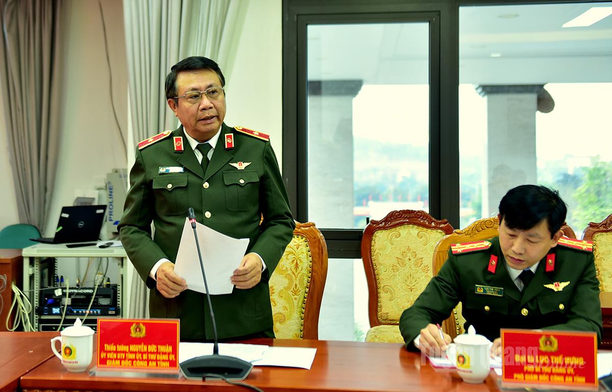 Tại buổi làm việc, Thiếu tướng Nguyễn Đức Thuận, Ủy viên Ban Thường vụ Tỉnh ủy, Bí thư Đảng ủy, Giám đốc Công an tỉnh báo cáo kết quả triển khai đợt cao điểm tấn công, trấn áp tội phạm, bảo đảm an ninh, trật tự, bảo vệ Đại hội đại biểu toàn quốc lần thứ XIV của Đảng, bầu cử đại biểu Quốc hội khóa XVI, đại biểu HĐND các cấp nhiệm kỳ 2026 - 2031 và Tết Nguyên đán Bính Ngọ 2026.