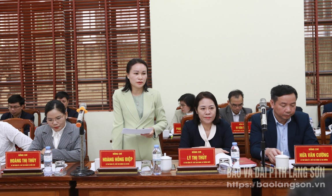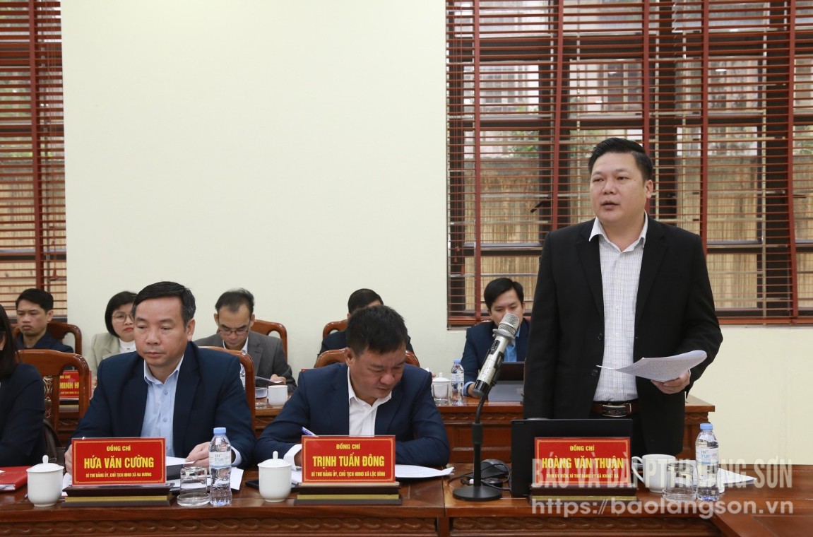 Thảo luận tại buổi làm việc, lãnh đạo các xã đã chia sẻ khó khăn; đồng thời đề xuất, kiến nghị một số nội dung liên quan đến bổ sung, tăng cường cán bộ, công chức xã, bố trí thêm xe công vụ; quan tâm đầu tư nâng cấp trụ sở làm việc, hạ tầng giao thông, hạ tầng cửa khẩu; đẩy nhanh tiến độ thực hiện một số dự án như: khu du lịch sinh thái, cáp treo Mẫu Sơn (tại xã Mẫu Sơn), công trình trường nội trú liên cấp tại xã Khuất Xá...