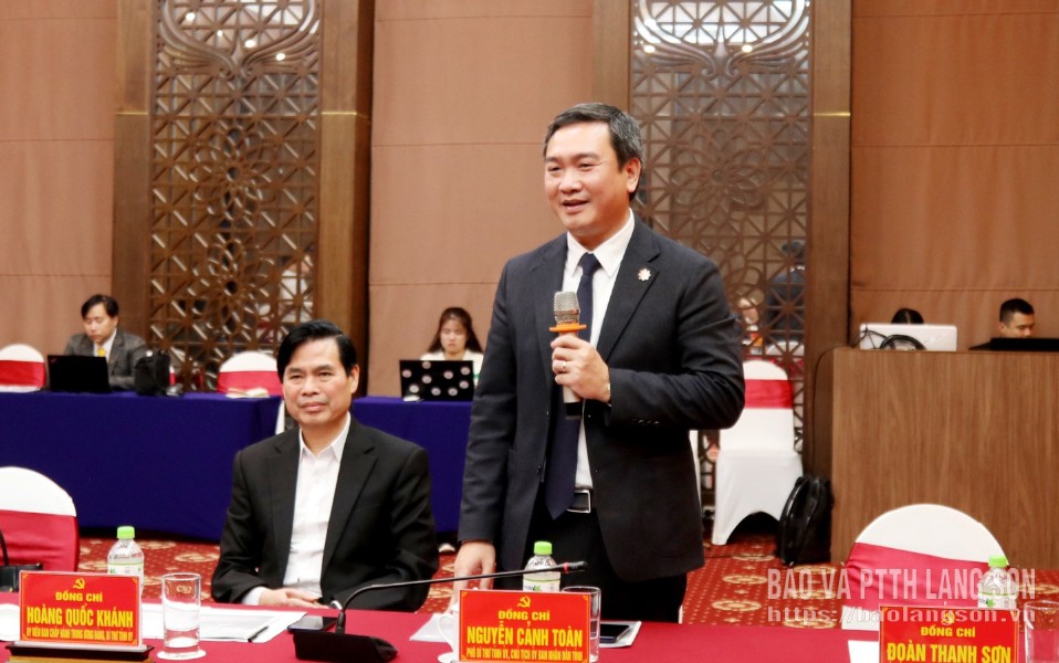 Đồng chí Nguyễn Cảnh Toàn, Phó Bí thư Tỉnh ủy, Chủ tịch UBND tỉnh phát biểu tại buổi làm việc