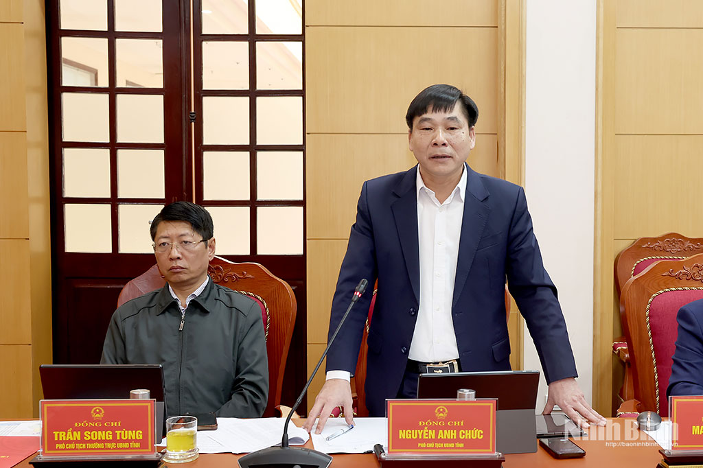 Đồng chí Nguyễn Anh Chức, Ủy viên Ban Thường vụ Tỉnh ủy, Phó Chủ tịch UBND tỉnh phát biểu tại hội nghị.