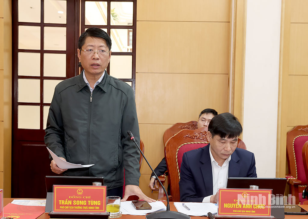 Đồng chí Trần Song Tùng, Ủy viên Ban Thường vụ Tỉnh ủy, Phó Chủ tịch Thường trực UBND tỉnh phát biểu tại hội nghị.