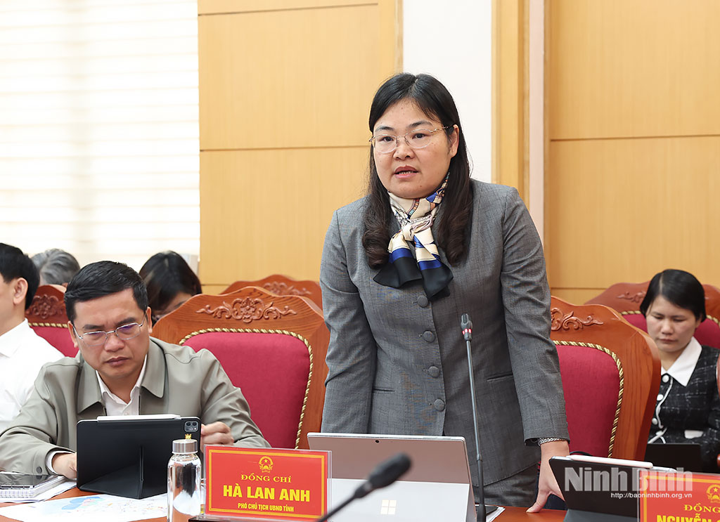 Đồng chí Hà Lan Anh, Tỉnh ủy viên, Phó Chủ tịch UBND tỉnh phát biểu tại hội nghị.