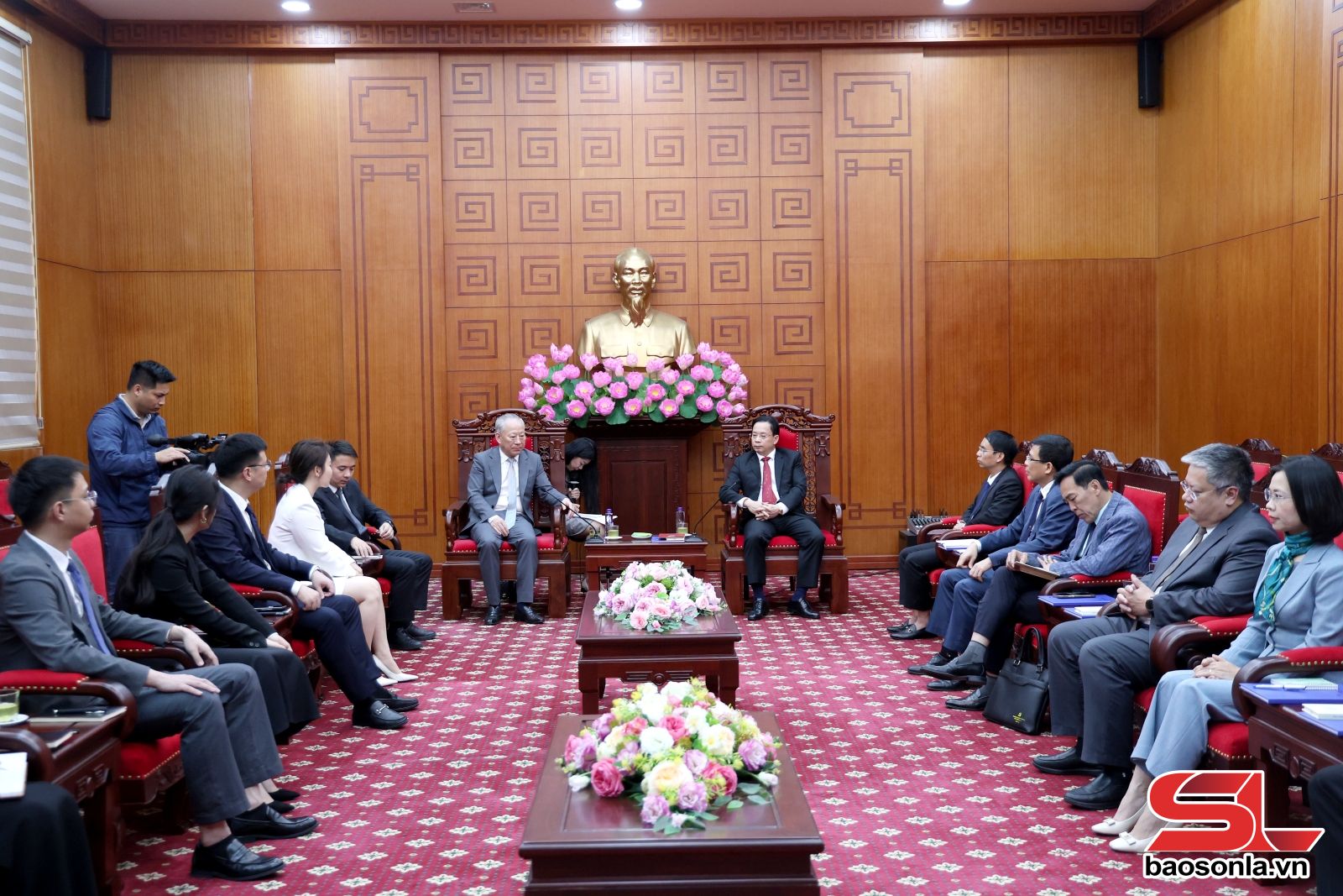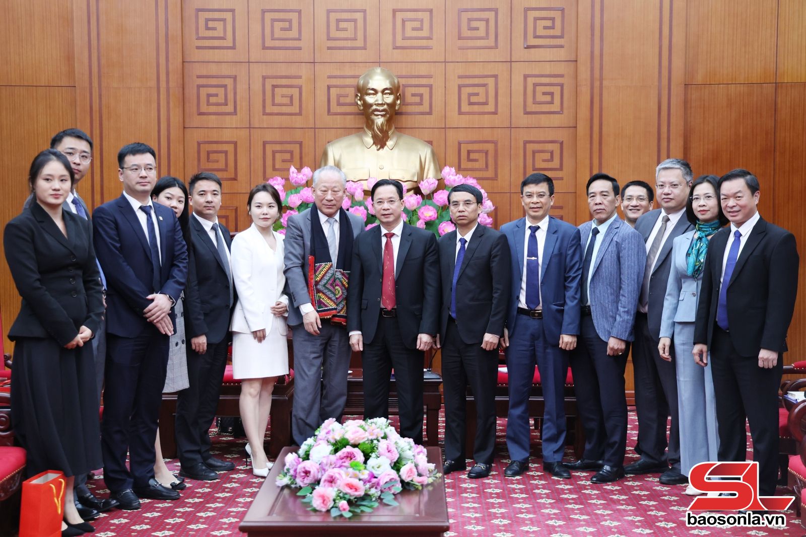 Lãnh đạo tỉnh Sơn La và Đoàn công tác Tập đoàn Xây dựng Thái Bình Dương chụp ảnh lưu niệm.