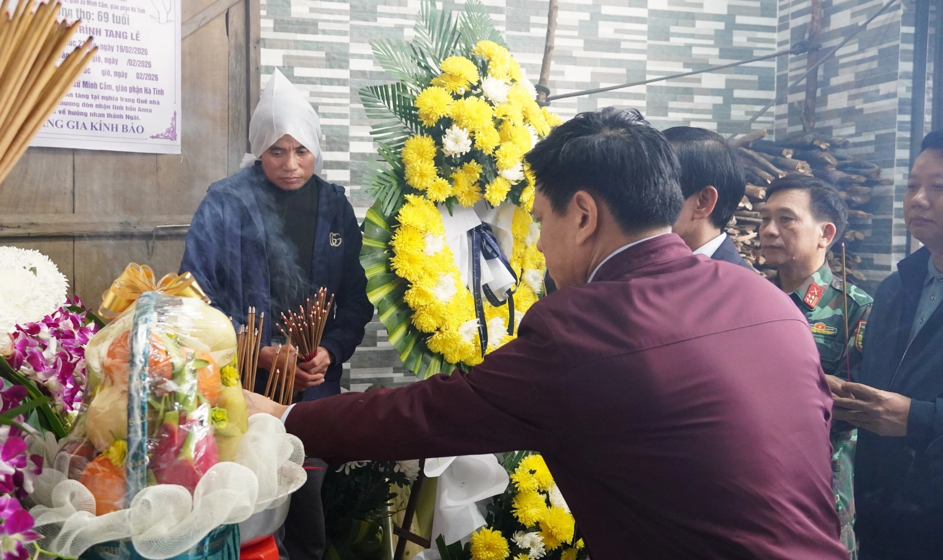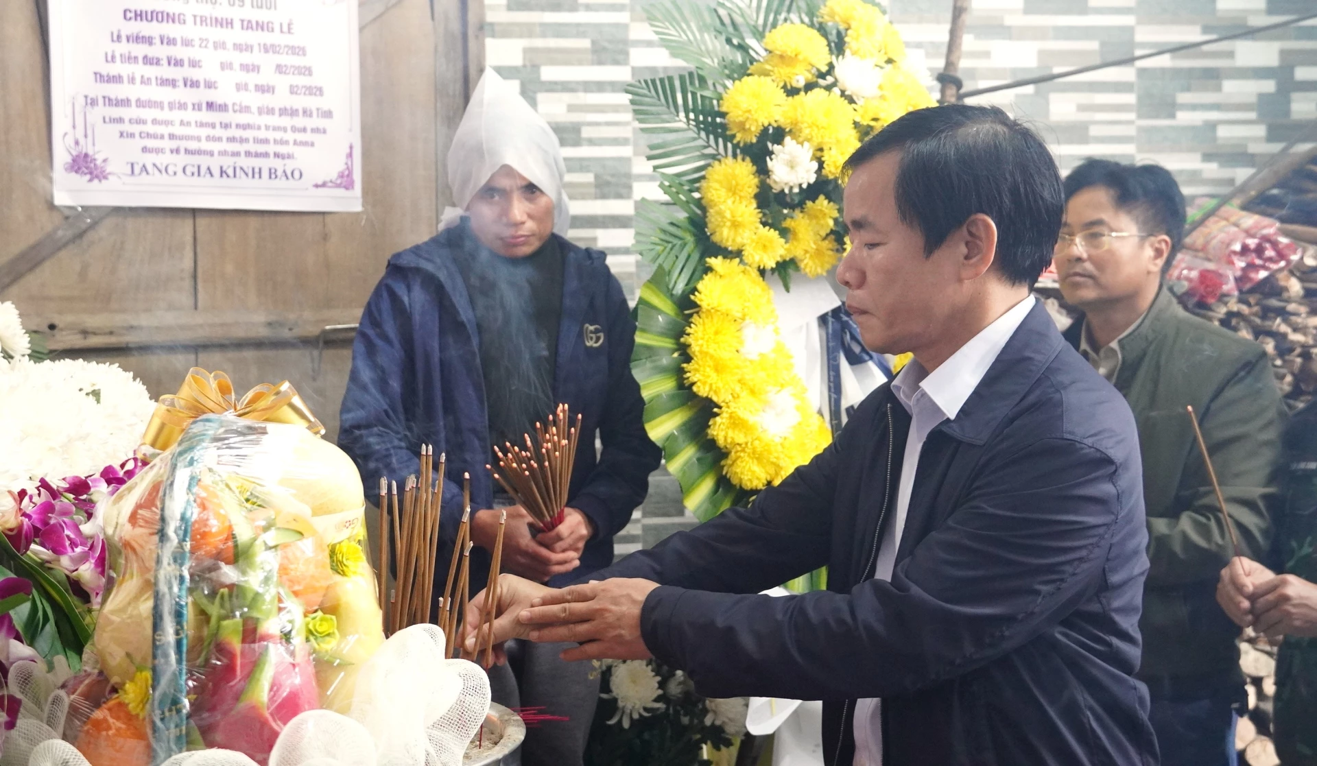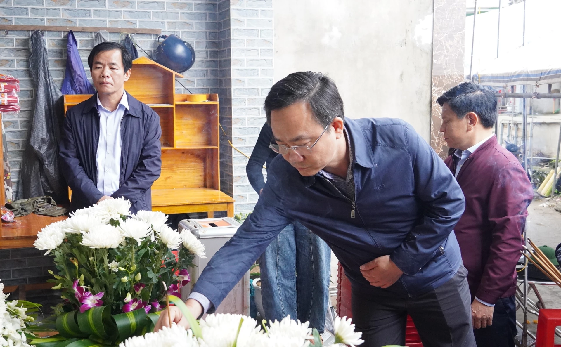 Đồng chí Phó Chủ tịch UBND tỉnh Hoàng Xuân Tân thắp hương, chia buồn với gia đình nạn nhân - Ảnh: Q.V