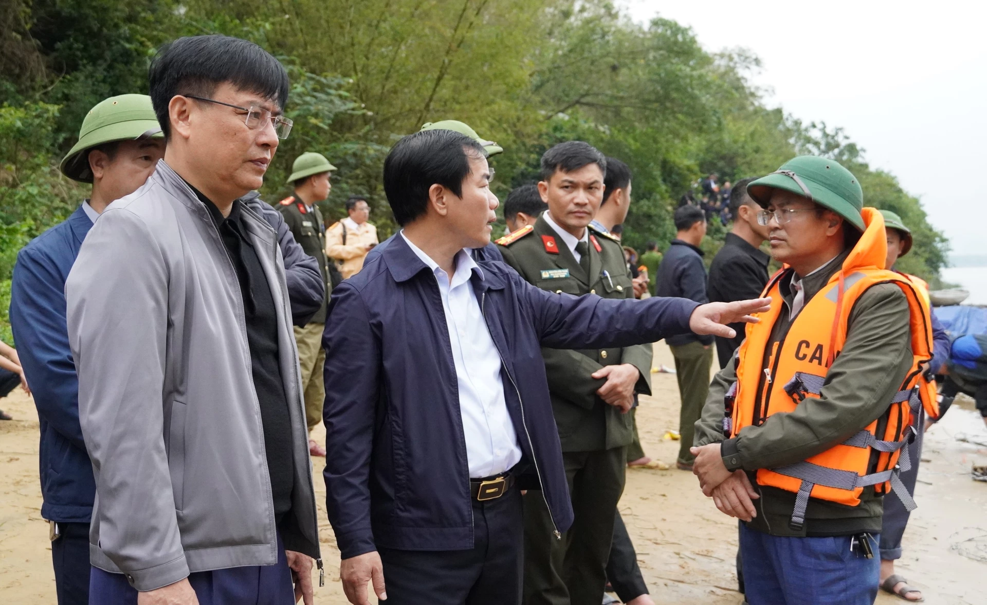 Đồng chí Bí thư Tỉnh ủy Nguyễn Văn Phương trực tiếp chỉ đạo công tác tìm kiếm nạn nhân mất tích - Ảnh: Q.V