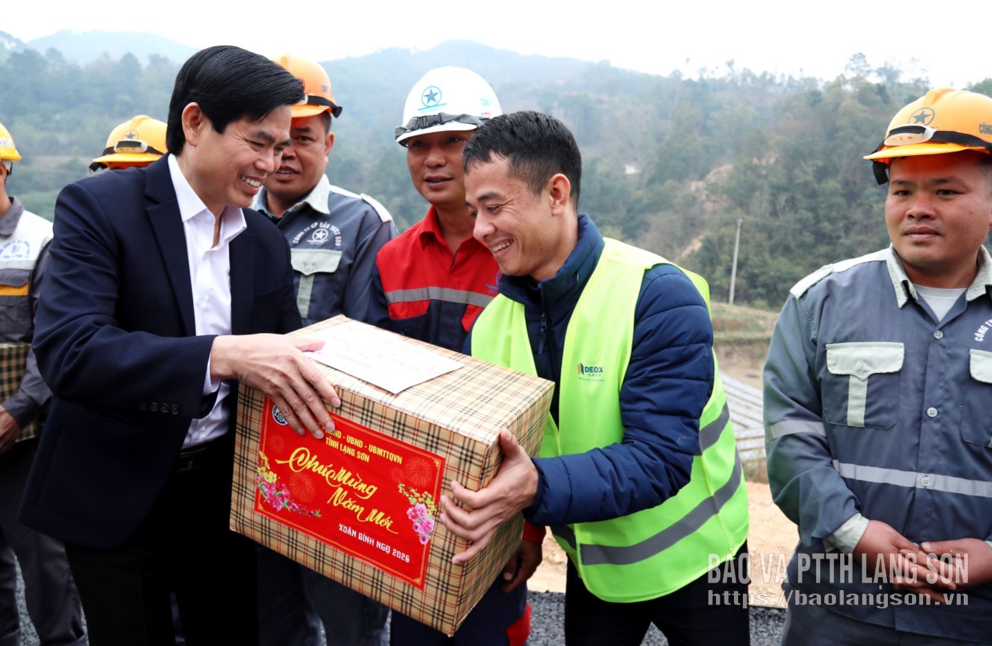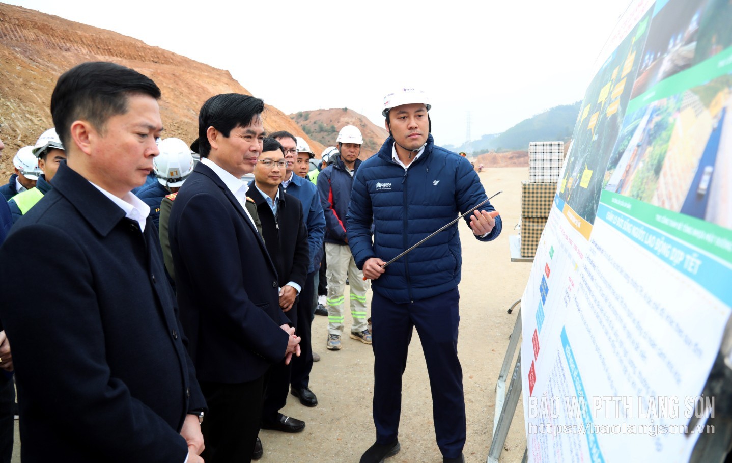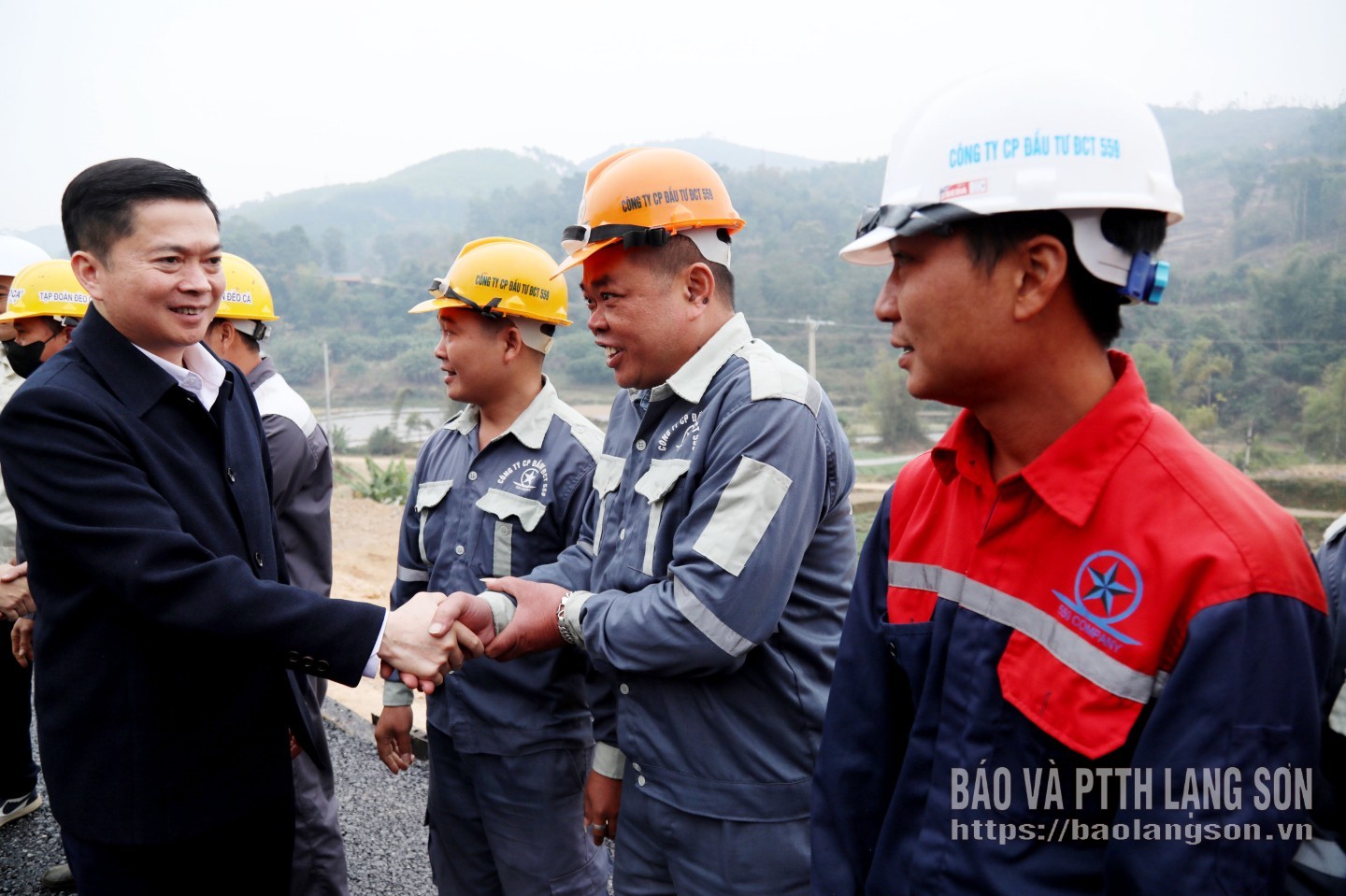 Tại công trường dự án tuyến cao tốc cửa khẩu Hữu Nghị - Chi Lăng, đồng chí Bí thư Tỉnh ủy ghi nhận nỗ lực của các nhà thầu trong tổ chức thi công các hạng mục và đánh giá cao công tác chăm lo tết cho người lao động.