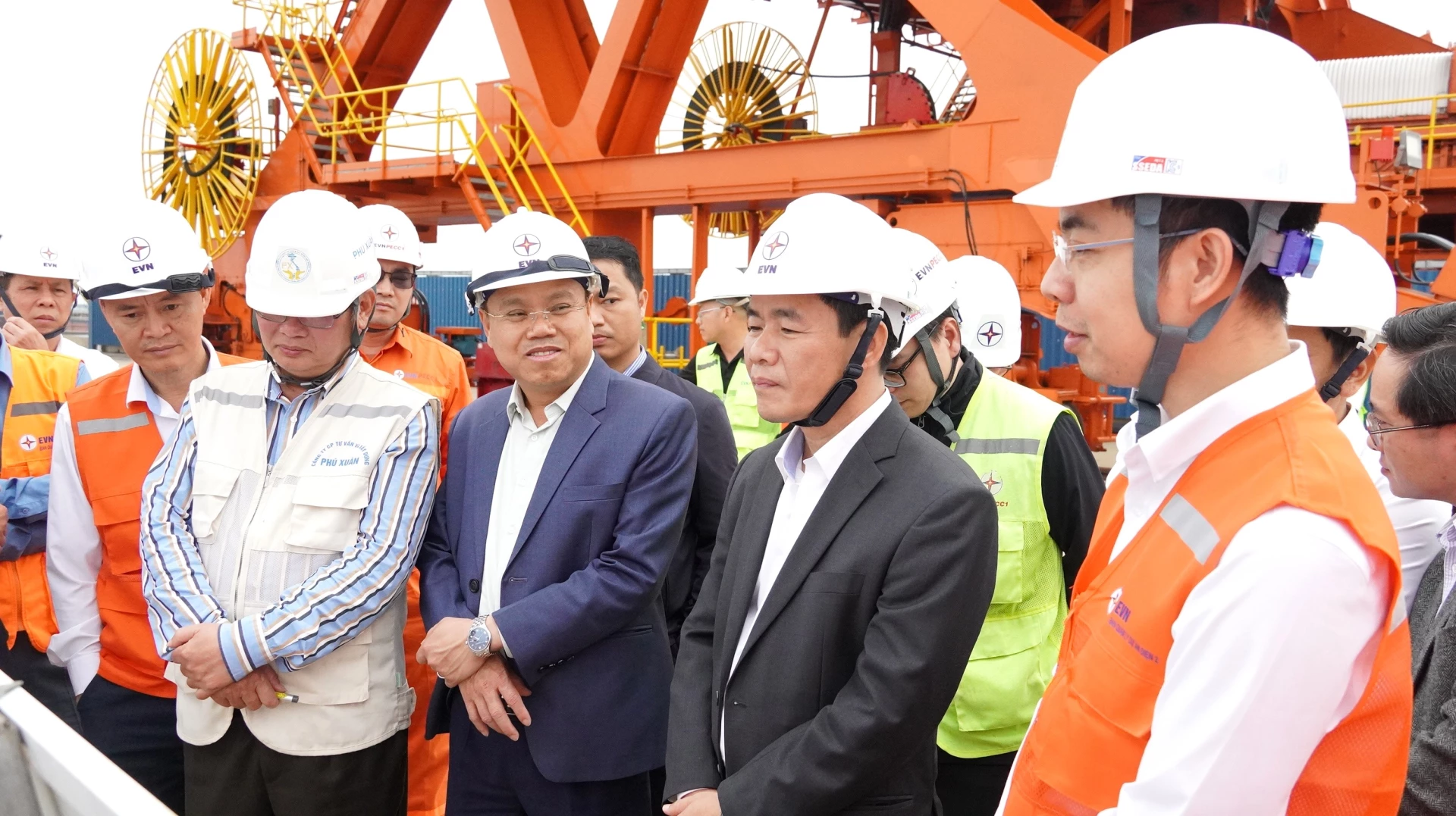 Đồng chí Bí thư Tỉnh ủy Nguyễn Văn Phương ghi nhận và đánh giá cao nỗ lực của EVN, Ban Quản lý dự án Điện 2 cùng các đơn vị liên quan - Ảnh: Q.V