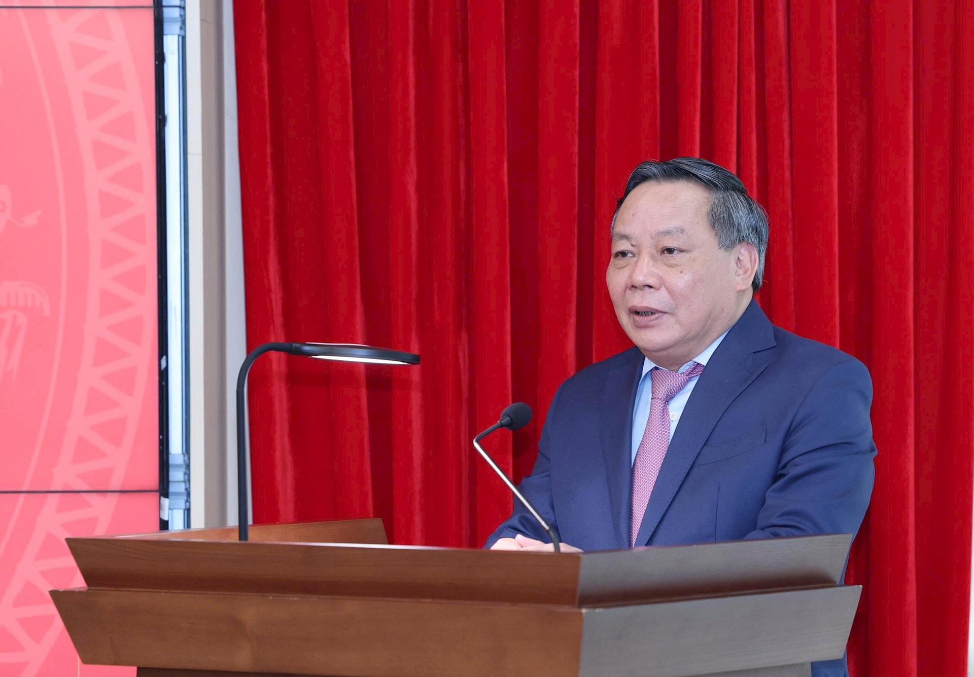 Phó Bí thư Thường trực Thành ủy Hà Nội Nguyễn Văn Phong phát biểu tại hội nghị. Ảnh: Viết Thành