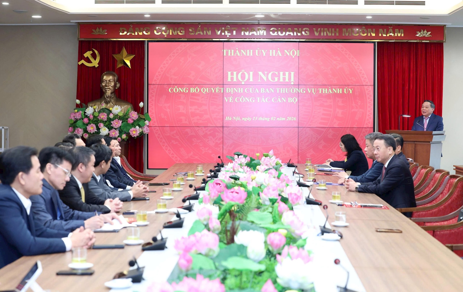 Tại hội nghị, Phó Trưởng ban Tổ chức Thành ủy Lê Trung Kiên đã công bố 2 quyết định của Ban Thường vụ Thành ủy Hà Nội về công tác cán bộ.