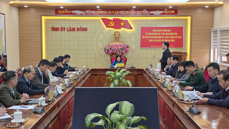 Quang cảnh buổi làm việc của đồng chí Bùi Thị Minh Hoài với tỉnh Lâm Đồng. Ảnh: Đoàn Kiên