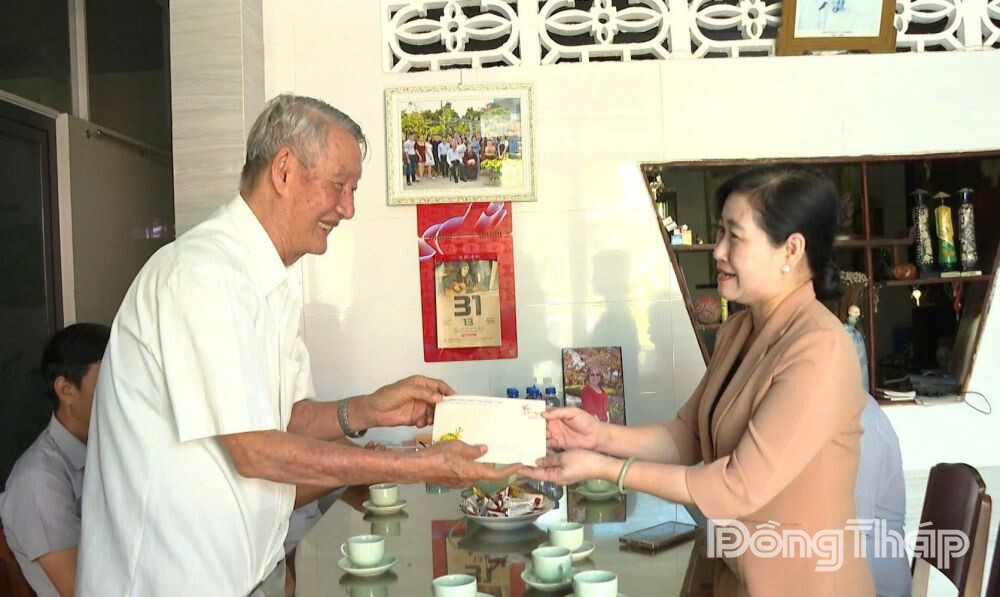 Đồng chí Châu Thị Mỹ Phương thăm, chúc tết đồng chí Võ Hồng Nhân, nguyên Ủy viên Ban Chấp hành Trung ương Đảng, nguyên Phó Trưởng Ban Tư tưởng - Văn hóa Trung ương, nguyên Bí thư Tỉnh ủy Đồng Tháp.