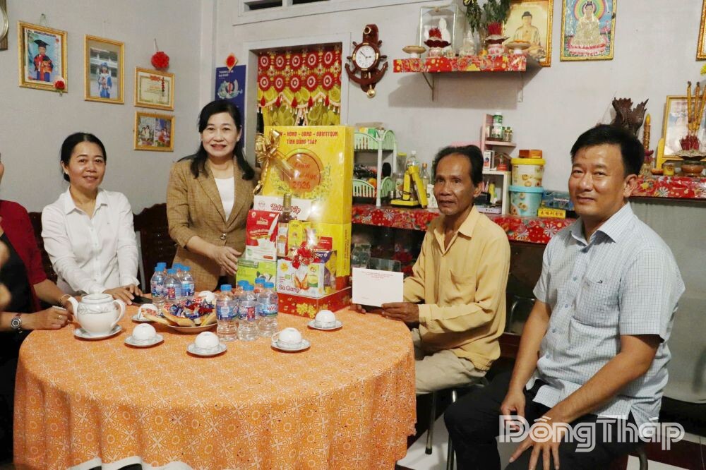 Đồng chí Châu Thị Mỹ Phương và lãnh đạo Đảng ủy phường Sa Đéc thăm, tặng quà tết gia đình ông Nguyễn Văn Mười (thương binh 81%) tại khóm Vĩnh Phước.