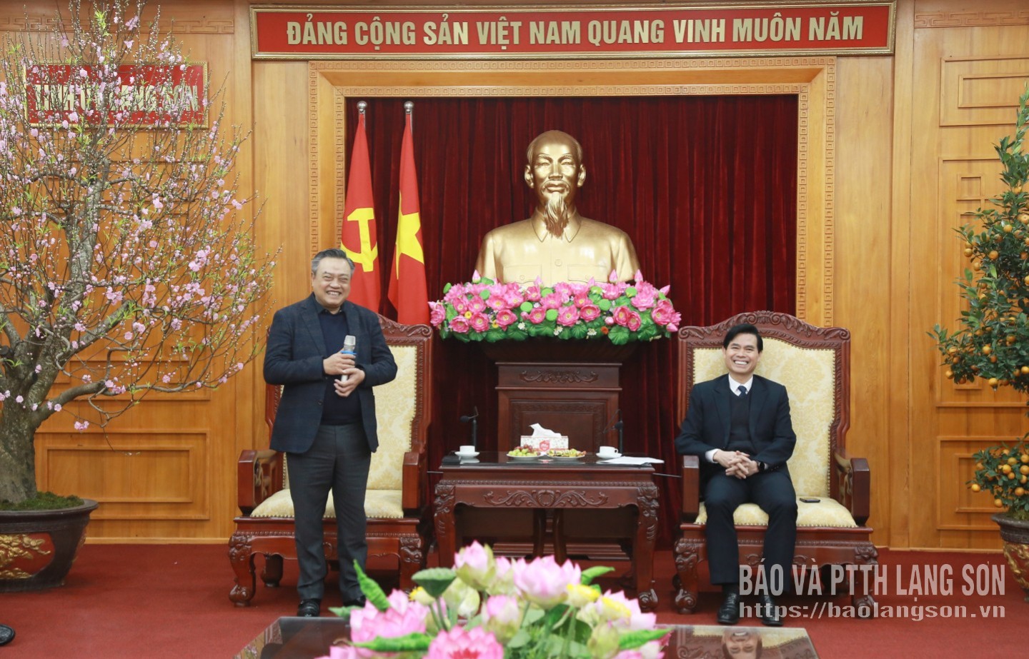 Tại buổi tiếp, đồng chí Bí thư Tỉnh ủy đã thông tin về những thành tựu nổi bật của tỉnh đạt được trong năm 2025. Cùng với các địa phương trong cả nước, tỉnh đã thực hiện việc sắp xếp tổ chức bộ máy, triển khai mô hình chính quyền địa phương 2 cấp đúng kế hoạch đề ra đồng thời tổ chức thành công đại hội đảng các cấp nhiệm kỳ 2025 - 2030. Đồng chí cũng nhấn mạnh một số nhiệm vụ trọng tâm năm 2026 và mong muốn trong thời gian tới, Lạng Sơn tiếp tục nhận được sự quan tâm, chỉ đạo của các đồng chí lãnh đạo Đảng, Nhà nước, cá nhân đồng chí Chủ nhiệm Ủy ban Kiểm tra Trung ương để tỉnh ngày càng phát triển, giàu đẹp, văn minh.