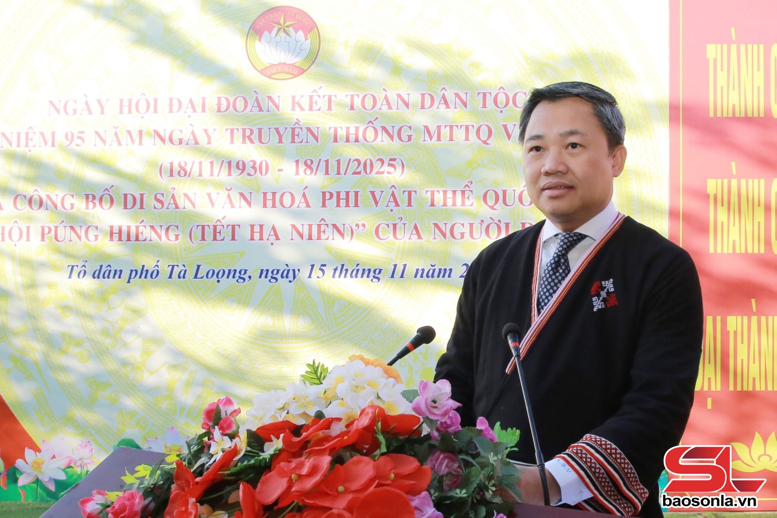 Trong không khí vui tươi, phấn khởi của Ngày hội đại đoàn kết toàn dân, đồng chí Chủ tịch UBND tỉnh cùng các đại biểu và nhân dân tổ dân phố Tà Loọng đã ôn lại lịch sử 95 năm Ngày thành lập Mặt trận Dân tộc thống nhất Việt Nam (18/11/1930 - 18/11/2025); vị trí, vai trò của MTTQ Việt Nam trong sự nghiệp cách mạng hiện nay; kết quả thực hiện các cuộc vận động, phong trào thi đua yêu nước và phát động các phong trào thi đua trên địa bàn tổ dân phố.