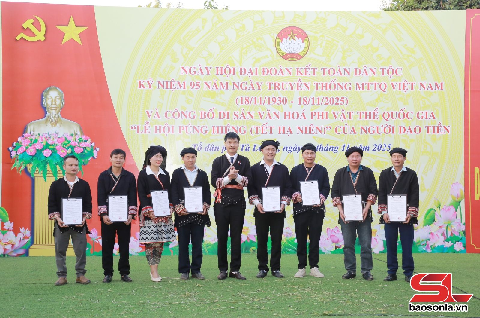 Đồng chí Chủ tịch UBND tỉnh chuyển trao Quyết định của Bộ Văn hóa, Thể Thao và Du lịch công nhận “Lễ hội Púng Híeng (Tết Hạ Niên) của người Dao Tiền” vào Danh mục Di sản văn hóa phi vật thể Quốc gia cho người Dao Tiền tại tổ dân phố Tà Loọng.
