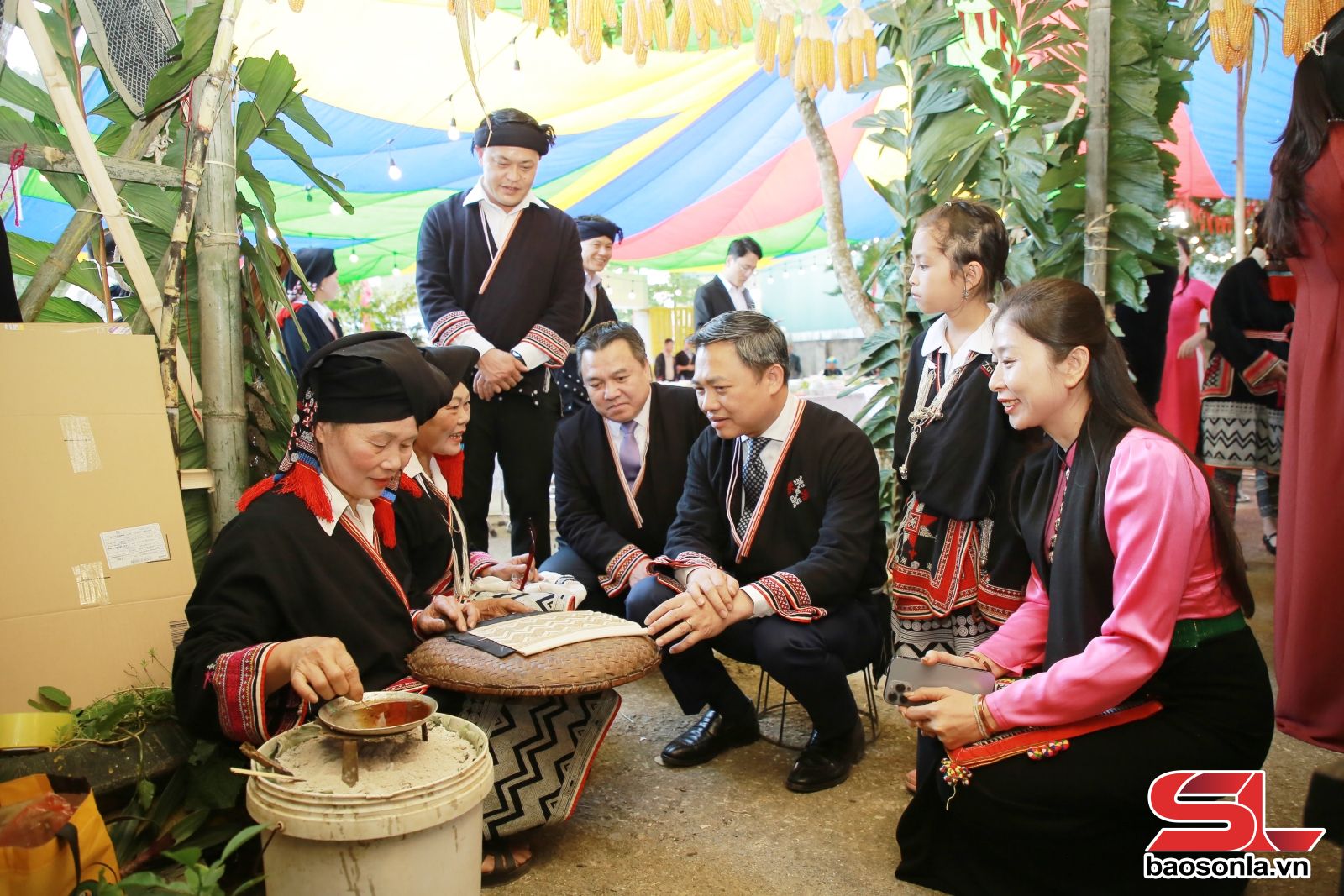 Các đại biểu tham quan không gian văn hóa của người Dao Tiền tại tổ dân phố Tà Loọng.