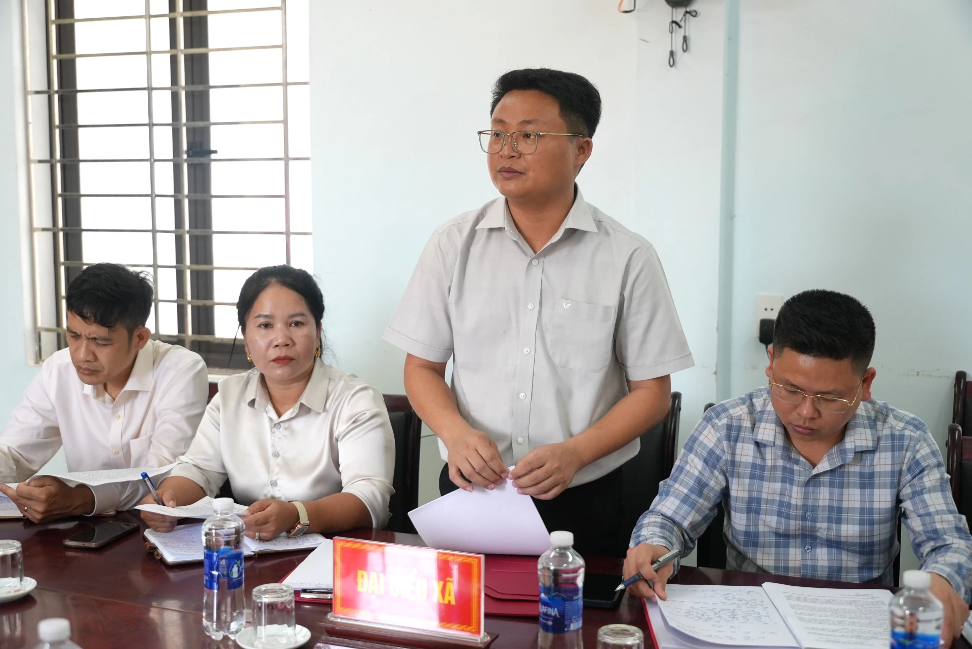 Lãnh đạo xã Dân Hóa báo cáo tình hình thực hiện nhiệm vụ phát triển kinh tế-xã hội, quốc phòng-an ninh thời gian qua - Ảnh: T.Đ