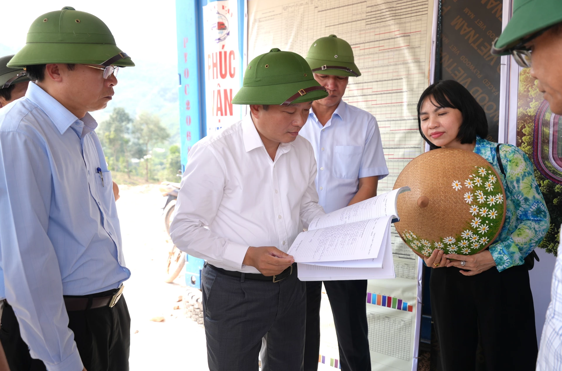 Đồng chí Lê Hồng Vinh, Chủ tịch UBND tỉnh trực tiếp kiểm tra sổ nhật ký thi công công trình - Ảnh: T.Đ