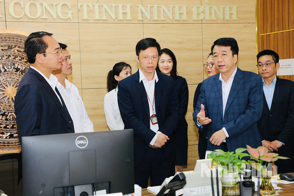 Đồng chí Nguyễn Thanh Bình, Phó Bí thư Tỉnh ủy, Chủ tịch UBND tỉnh thăm, kiểm tra Trung tâm Phục vụ hành chính công tỉnh.