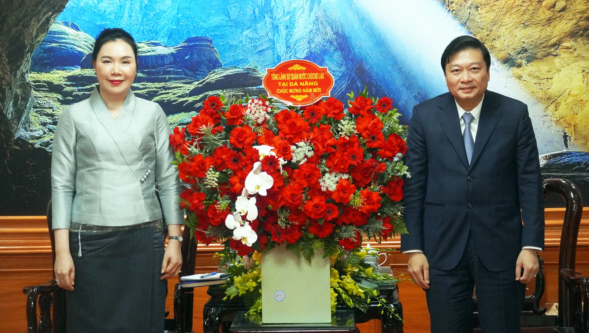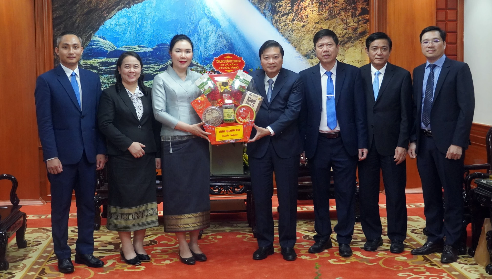 Tiếp đó, đoàn đại biểu Tổng Lãnh sự quán nước Cộng hòa DCND Lào tại thành phố Đà Nẵng do đồng chí Vonekham CHEUANGMANIVONG, Tổng Lãnh sự làm trưởng đoàn đã chúc Tết Đảng bộ, chính quyền và Nhân dân tỉnh Quảng Trị.