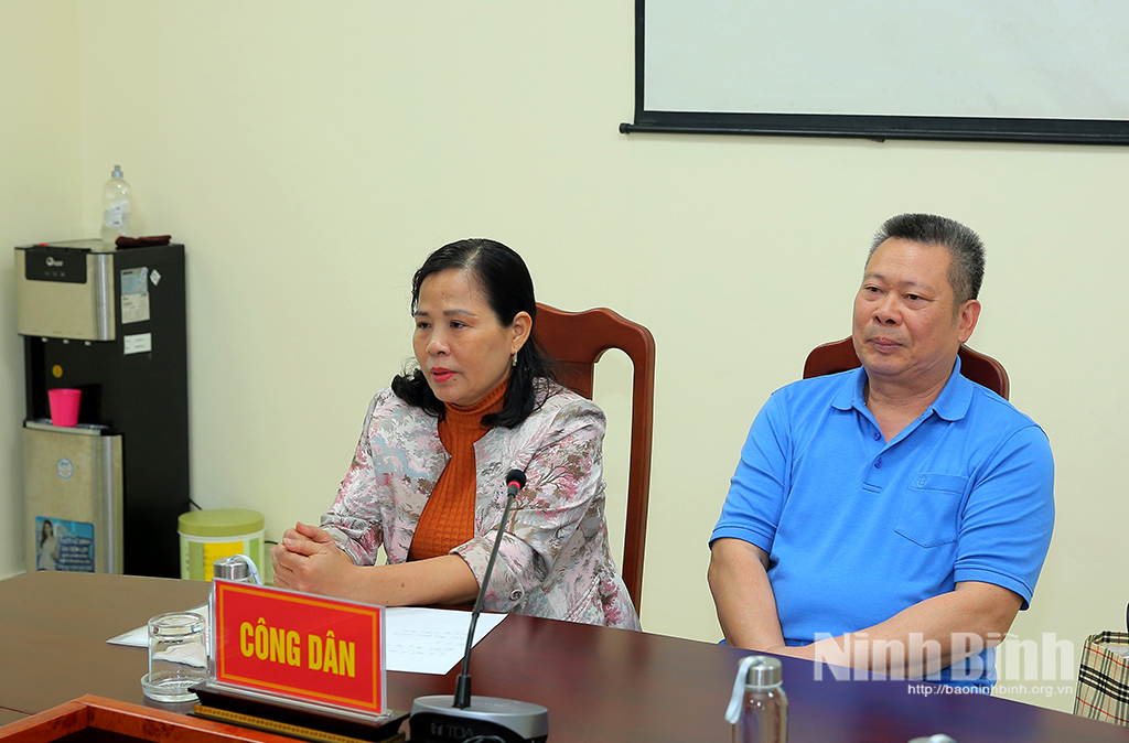 Gia đình ông Trần Văn Hưng (trú tại Tổ 7, phường Thiên Trường) trình bày kiến nghị tại phiên tiếp công dân.