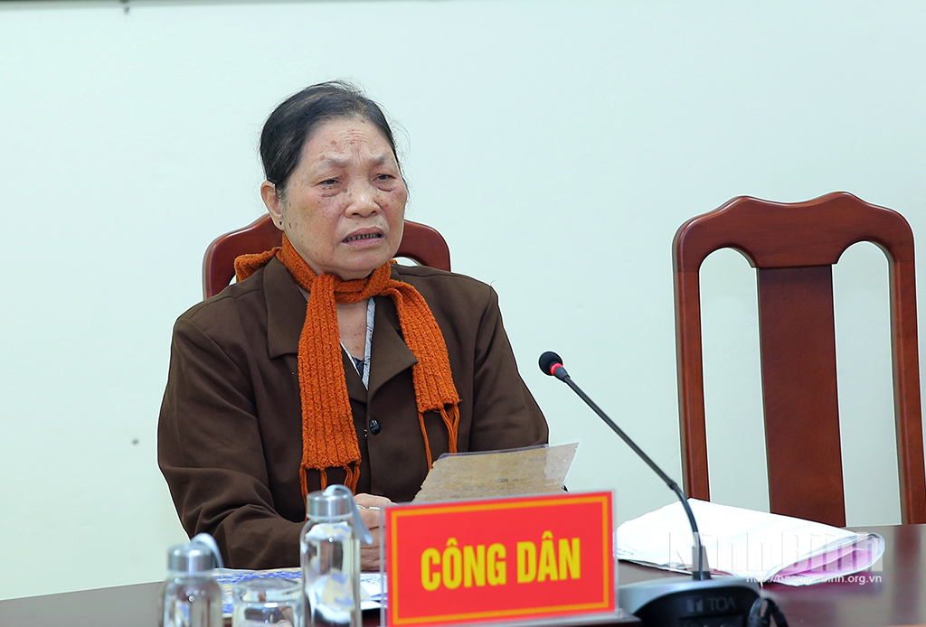 Bà Lê Thị Mai Hiên (trú tại thôn Ngò Báng, xã Nam Xang) trình bày kiến nghị tại phiên tiếp công dân.