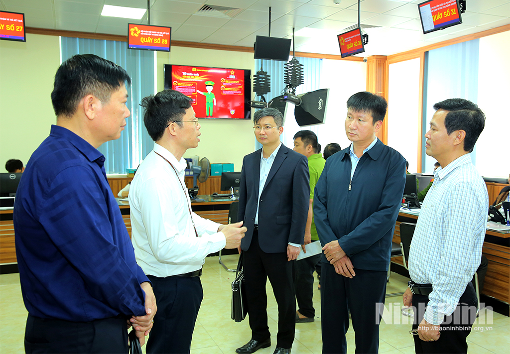 Đồng chí Chủ tịch UBND tỉnh Trần Huy Tuấn đến thăm, kiểm tra hoạt động tại Trung tâm Phục vụ hành chính công tỉnh Ninh Bình.