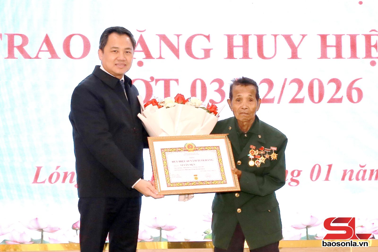 Tại Đảng bộ xã Lóng Sập, đồng chí Chủ tịch UBND tỉnh đã trao Huy hiệu 60 năm tuổi Đảng cho đảng viên Vì Văn Mụn, Chi bộ bản Cang. Đại diện Đảng ủy xã đã trao Huy hiệu 40 năm tuổi Đảng cho 4 đảng viên.