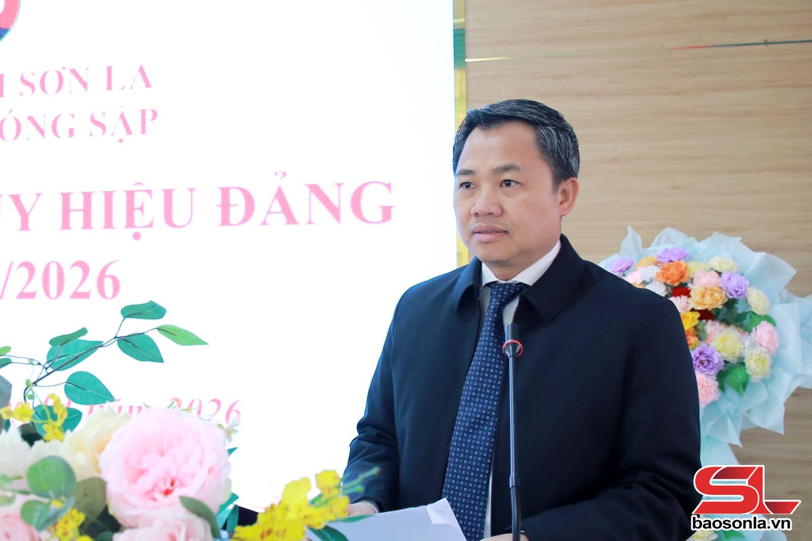Đồng chí Chủ tịch UBND tỉnh phát biểu tại Lễ trao tặng Huy hiệu Đảng.